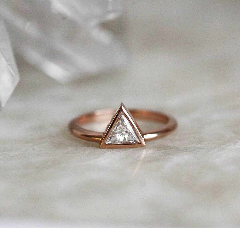 Elegantni prsten sa dijamantom od 0.25 karata trouglastog oblika. Dostupan u 14k ili 18k roze zlatu, belom zlatu i platini - Molimo vas da pogledate padajući meni.
