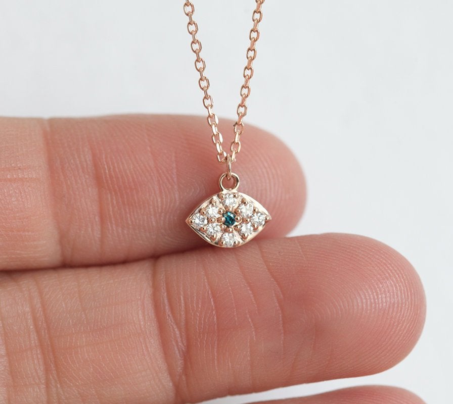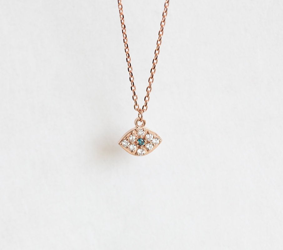 Luksuzna ogrlica od punog zlata sa okom ili kombinacijom oka i ruke hamsa, simbol zaštite od zlog oka. Dragulji se mogu personalizovati po vašem izboru.