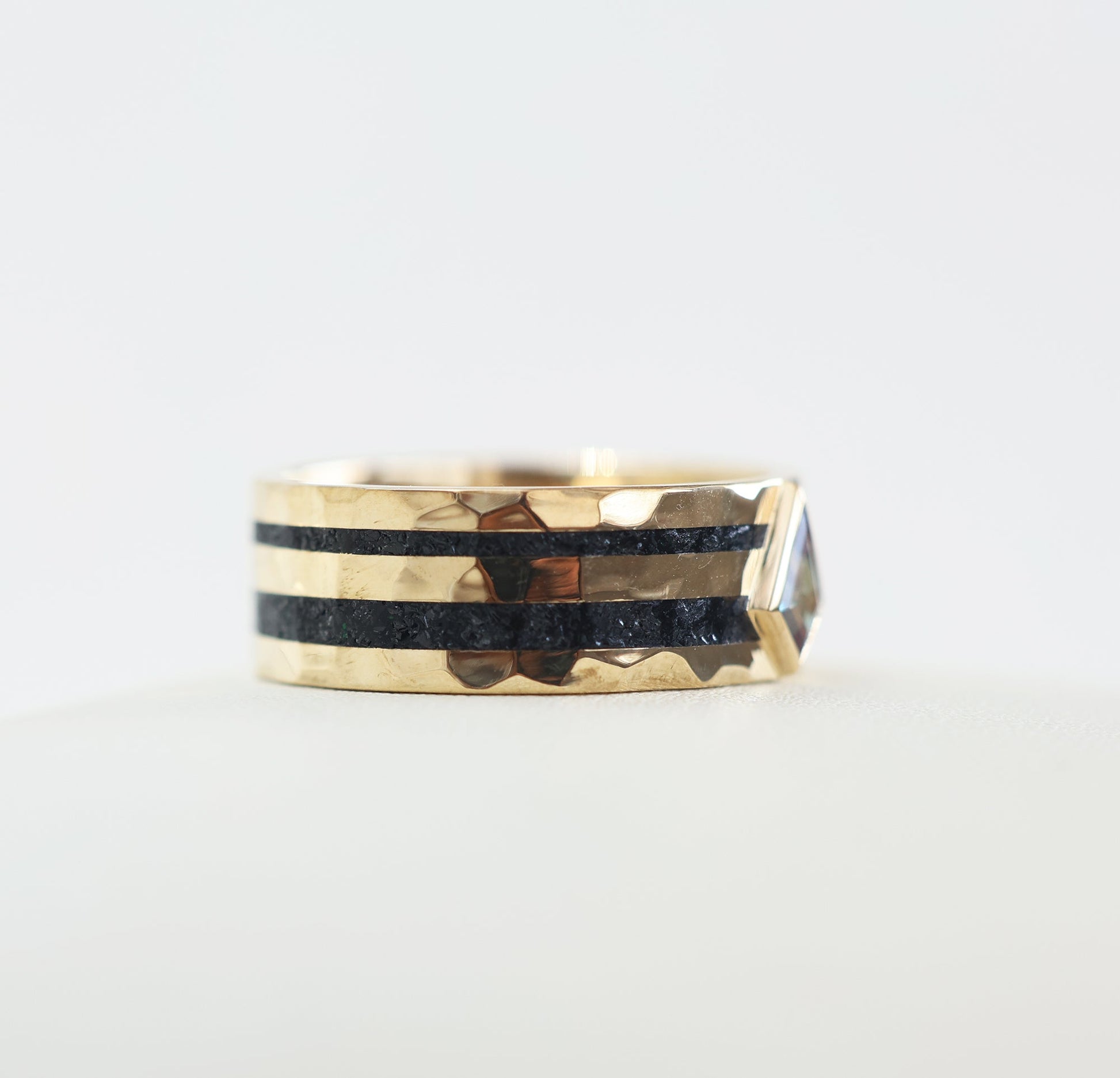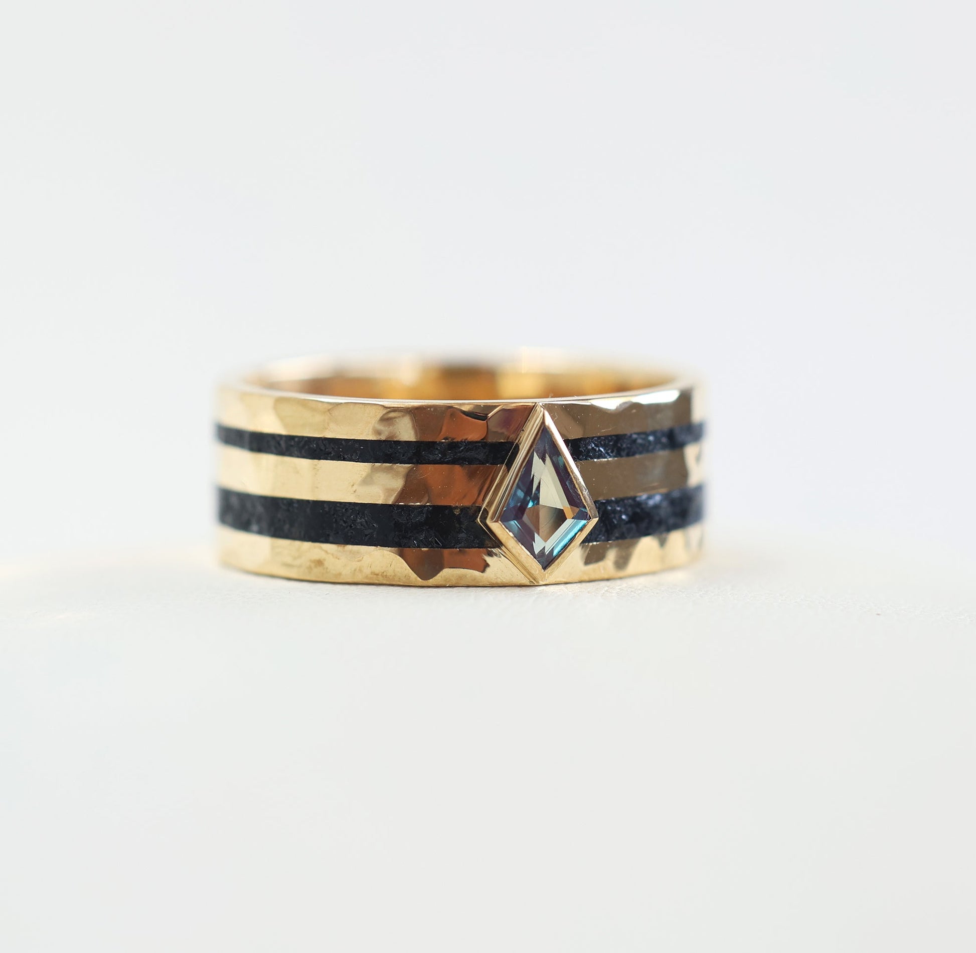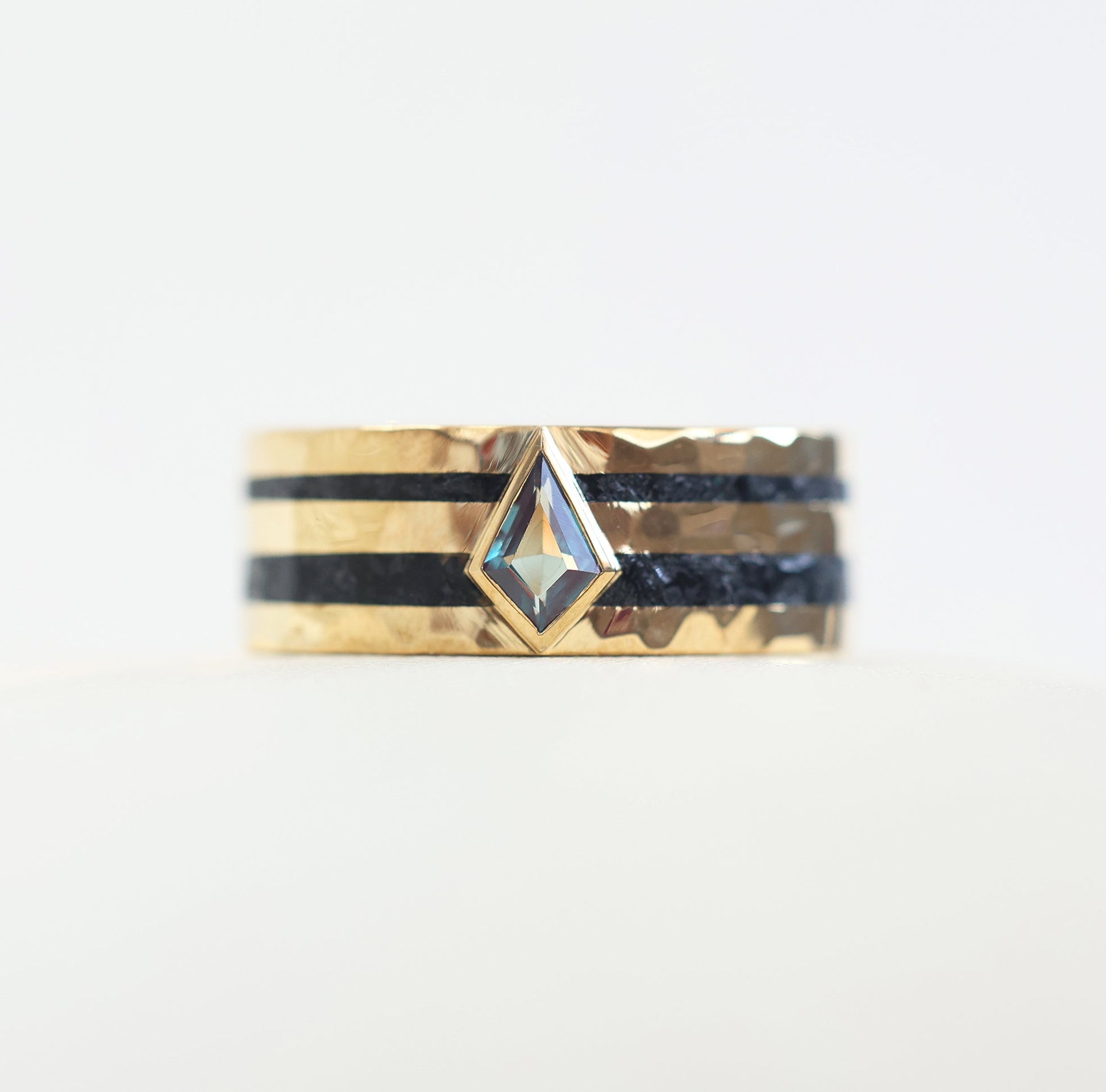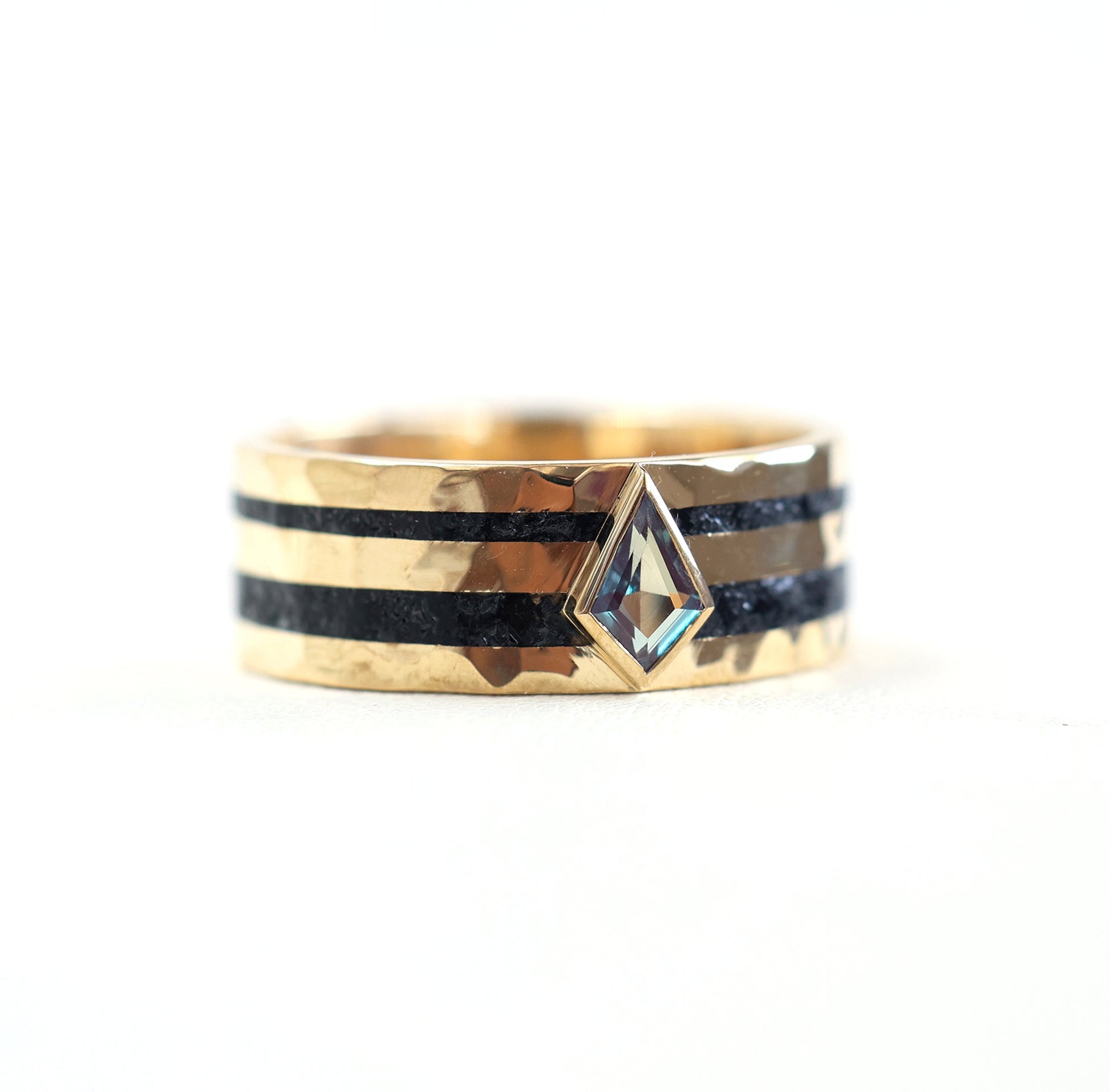 Ovaj prelep prsten izrađen je od usitnjenog crnog spinela i kite lab aleksandrita. Pogledajte i naš Rowan prsten sa crnim spinelom i crnim dijamantima.