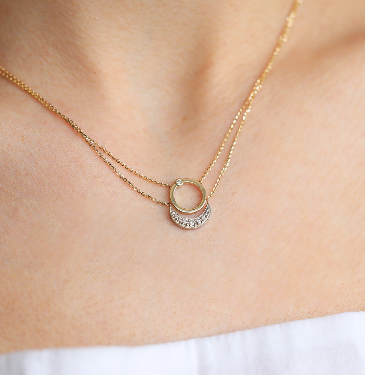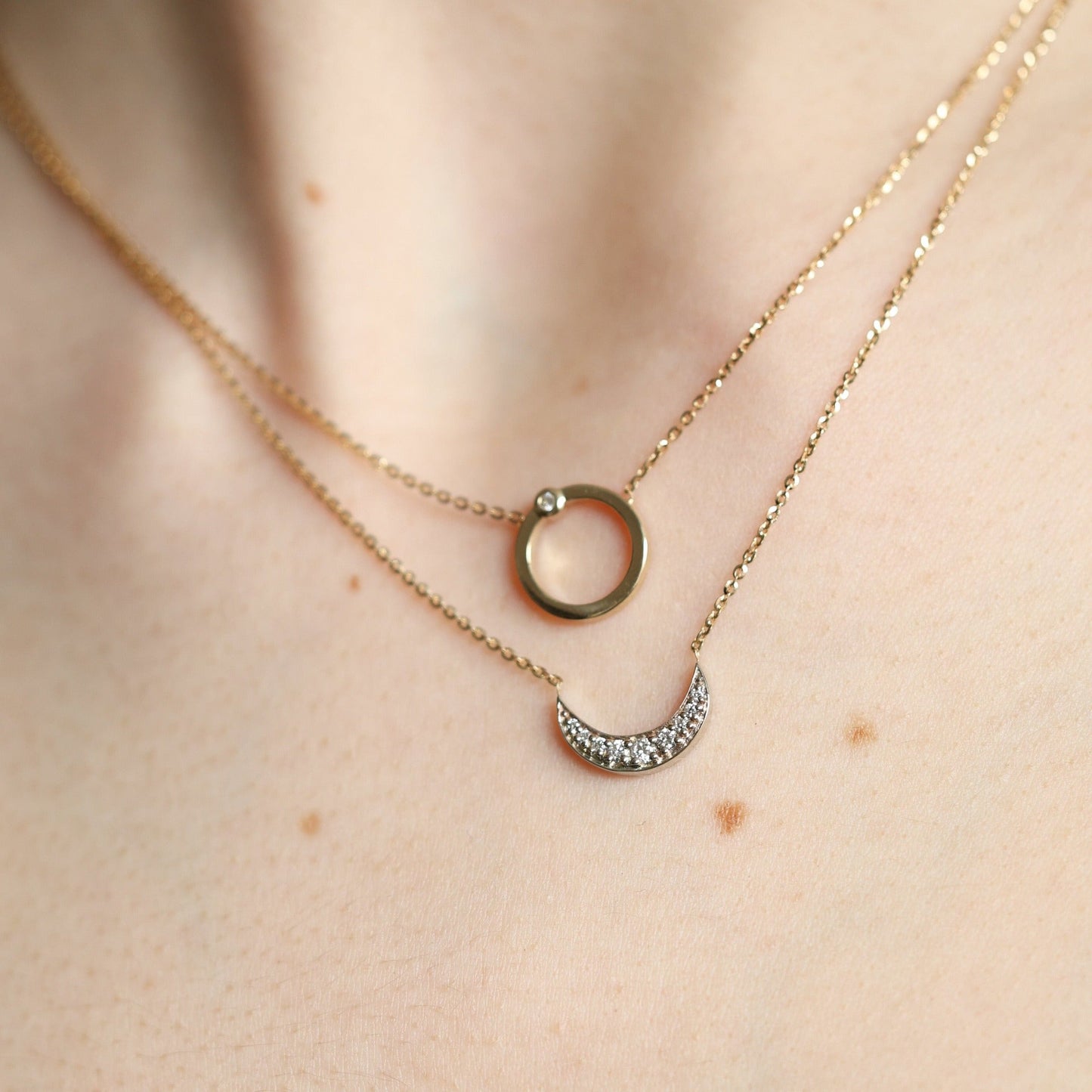 Moderna ogrlica sa dijamantskim polumjesecom.