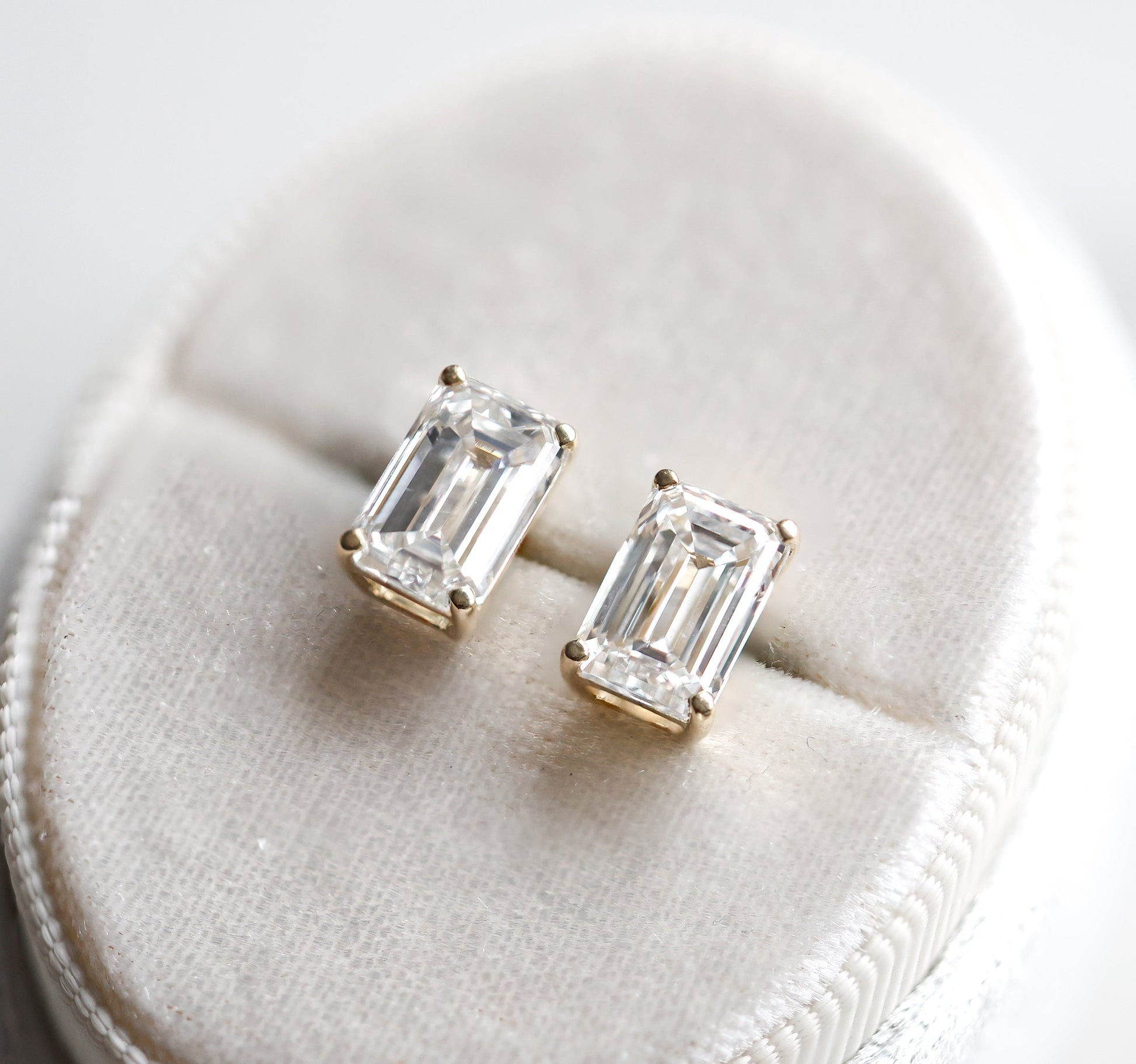 Elegantne lab grown dijamantske minđuše u Emerald cut obliku, savršene za svakodnevno nošenje.