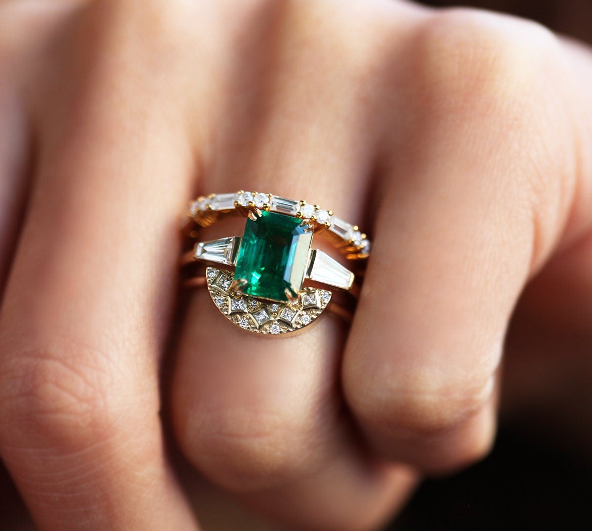 Naša Art Deco kolekcija se vraća sa Cleo emerald cut smaragdnim prstenom. Uparen sa prelepim prstenom, ovaj set je savršen za vaš verenički ili dan burme.