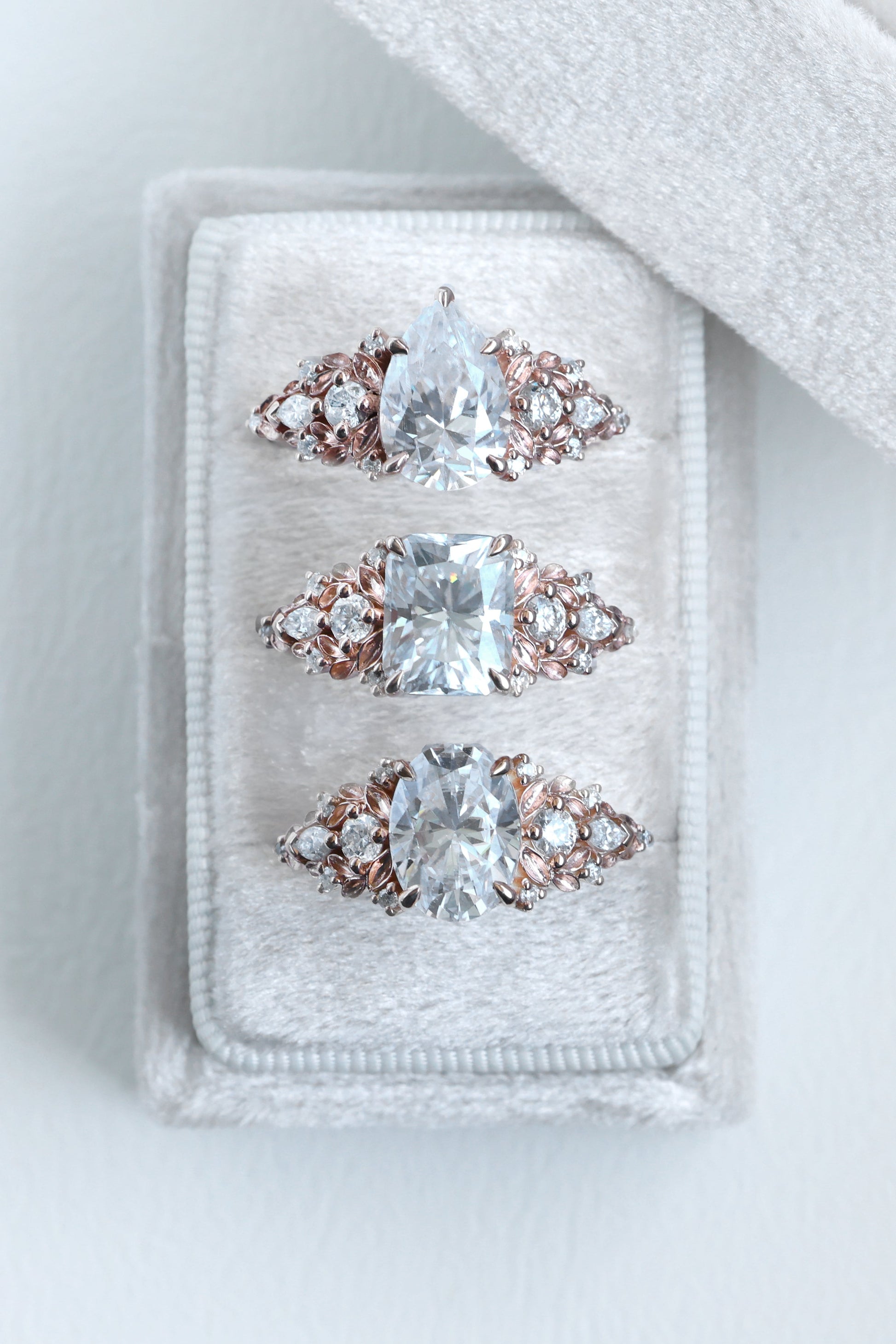 Možete birati između različitih oblika i rezova dijamanata (brilliant, pear, marquise, princess, oval itd.).