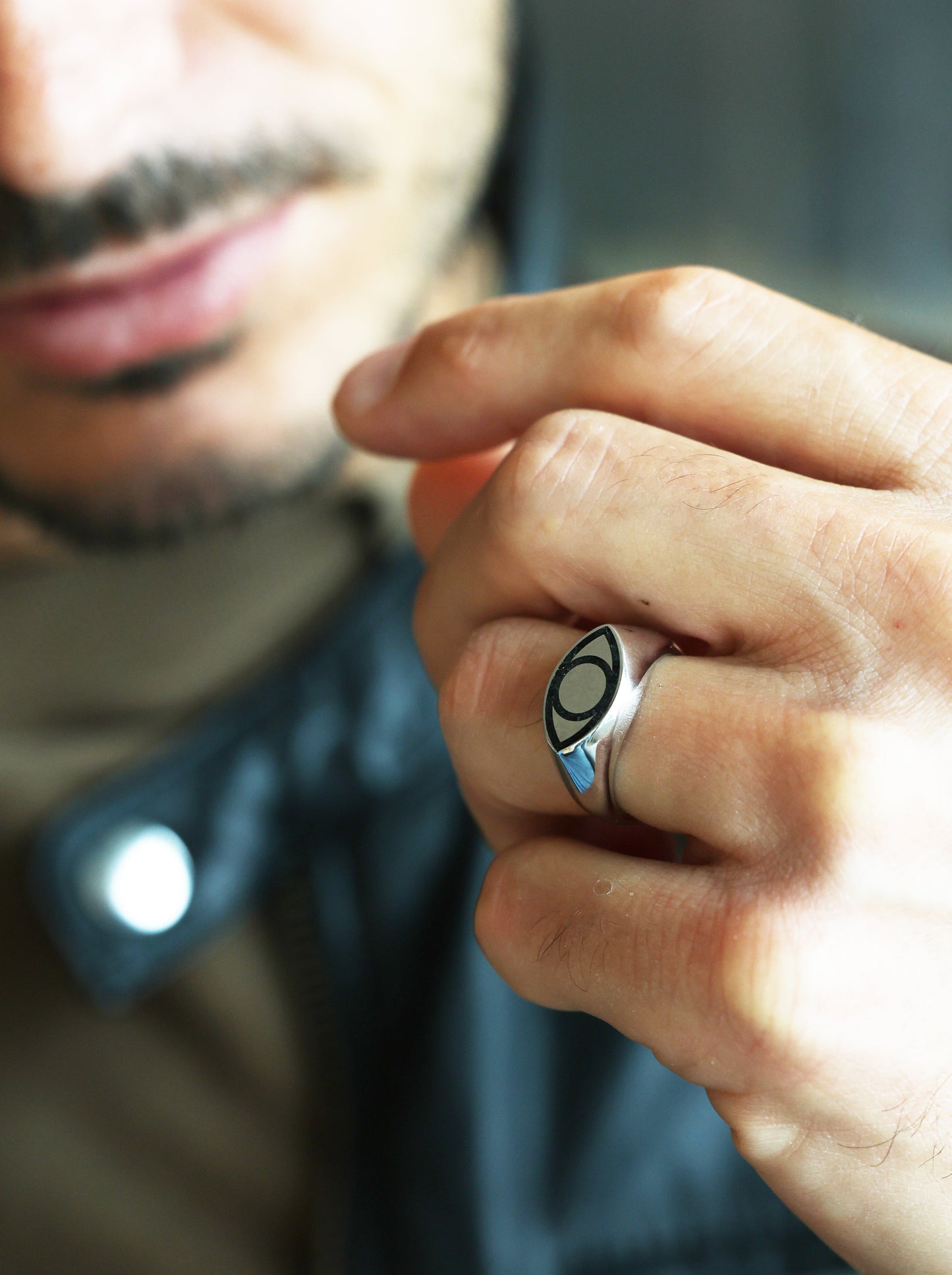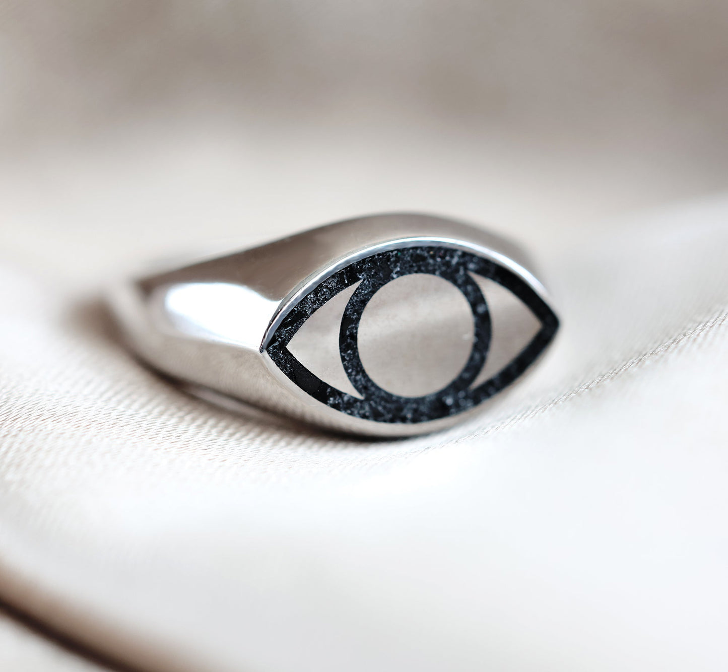 Prsten sa inlejom crnog spinela u obliku pečata "Sva videća oka"