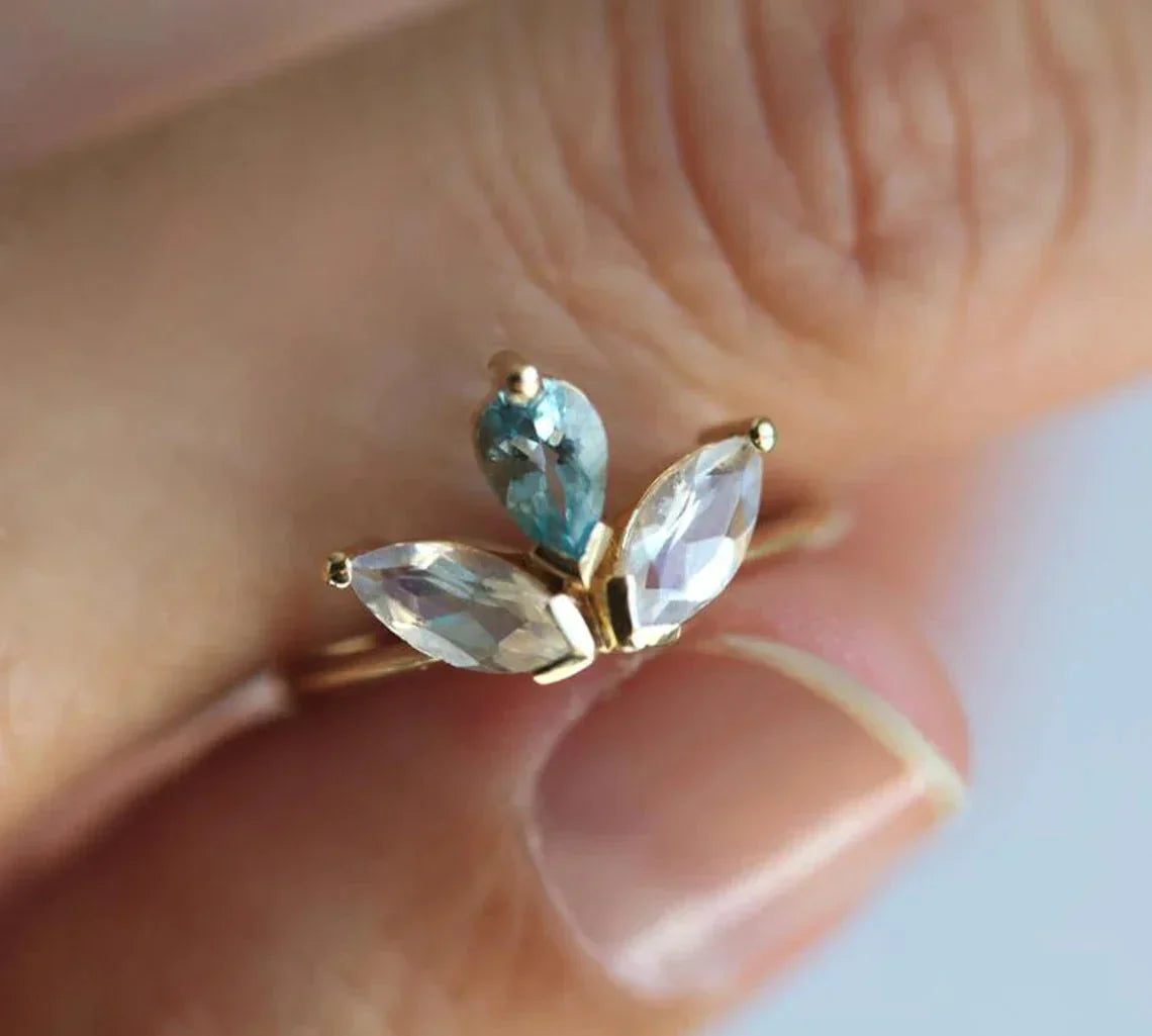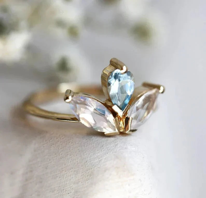 Lyanna cvetni prsten sa mesečevim kamenom i akvamarinom