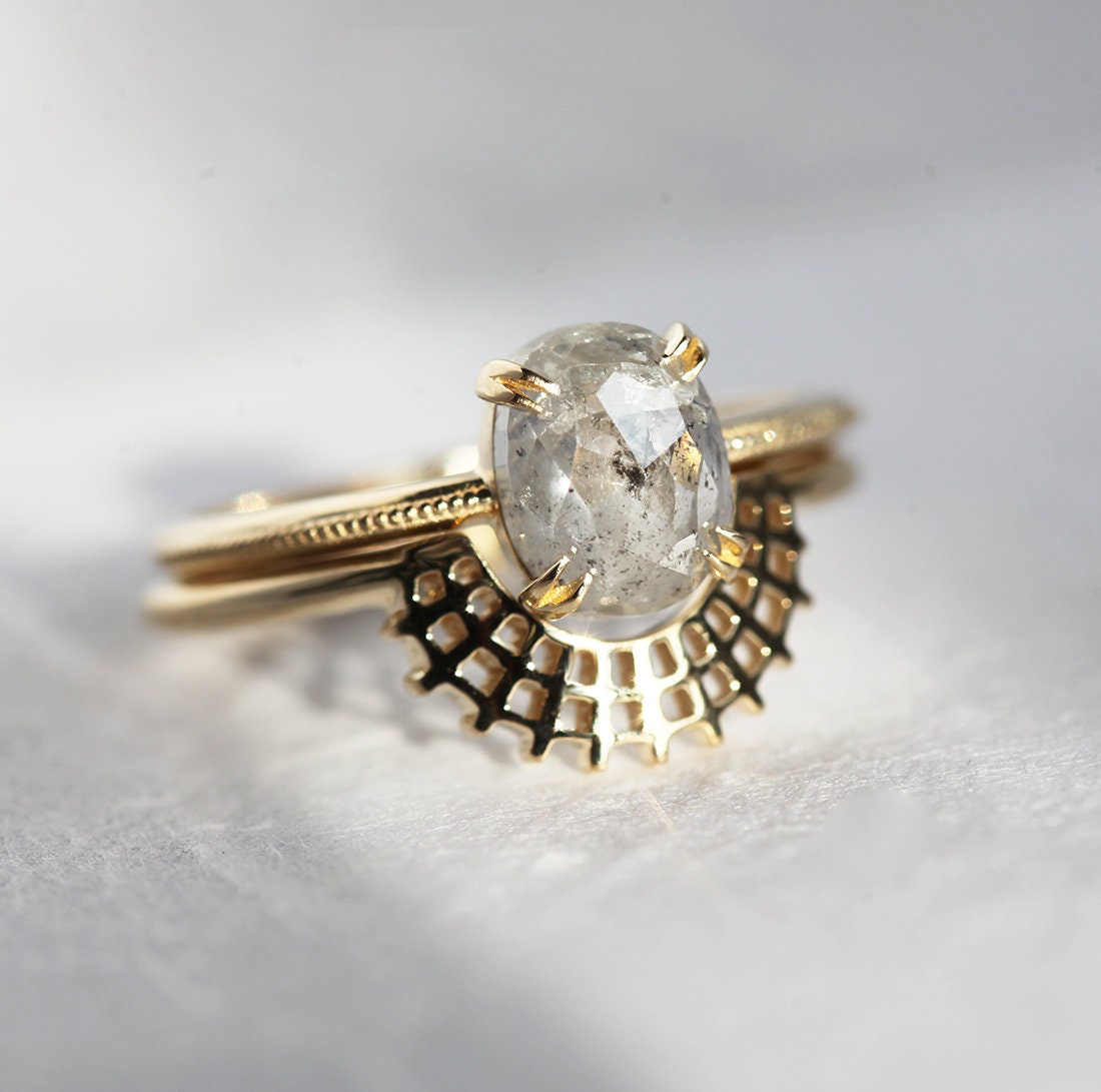 Nežan zlatni čipkasti prsten. Ako vam je potreban prsten koji će dopuniti i istaći vaš postojeći prsten, ovo je pravi izbor za vas. Takođe se može nositi samostalno za minimalistički izgled.