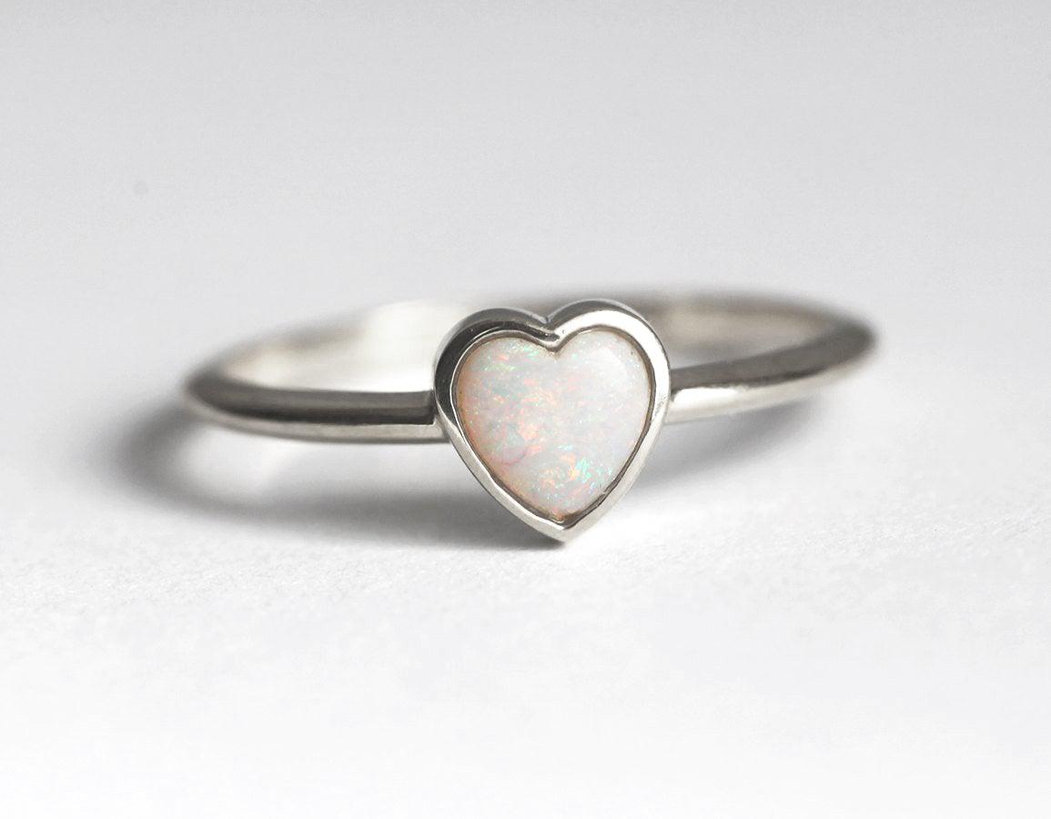Prsten od zlata sa belim australijskim opalom u obliku srca. Ovaj nežni prsten može biti izrađen od 14k ili 18k čvrstog zlata i savršen je kao prsten za godišnjicu ili kao dodatak vašim prstenovima za slaganje. Spreman za slanje u 14k žutom zlatu, US veličina 6 (može se prilagoditi).