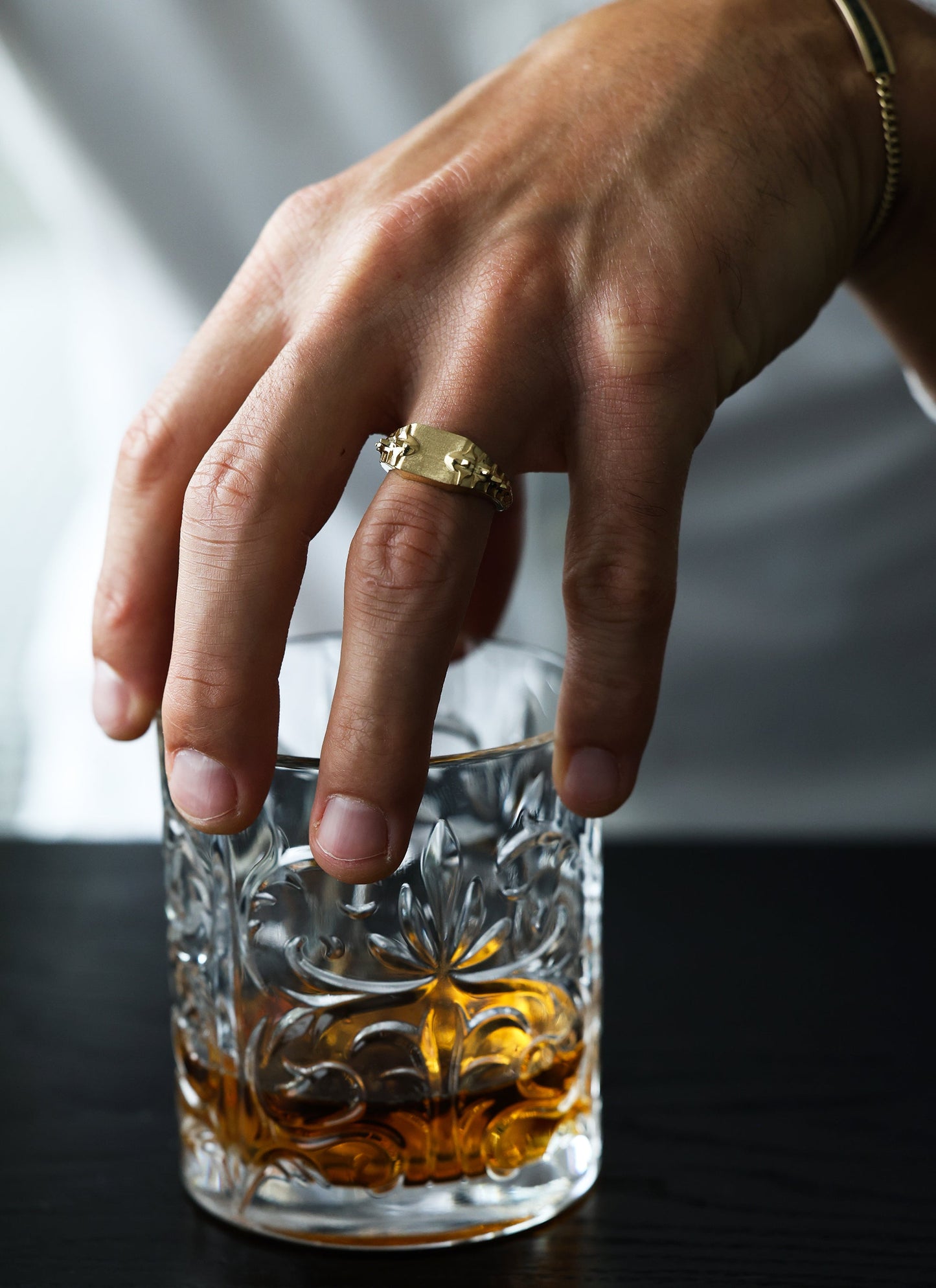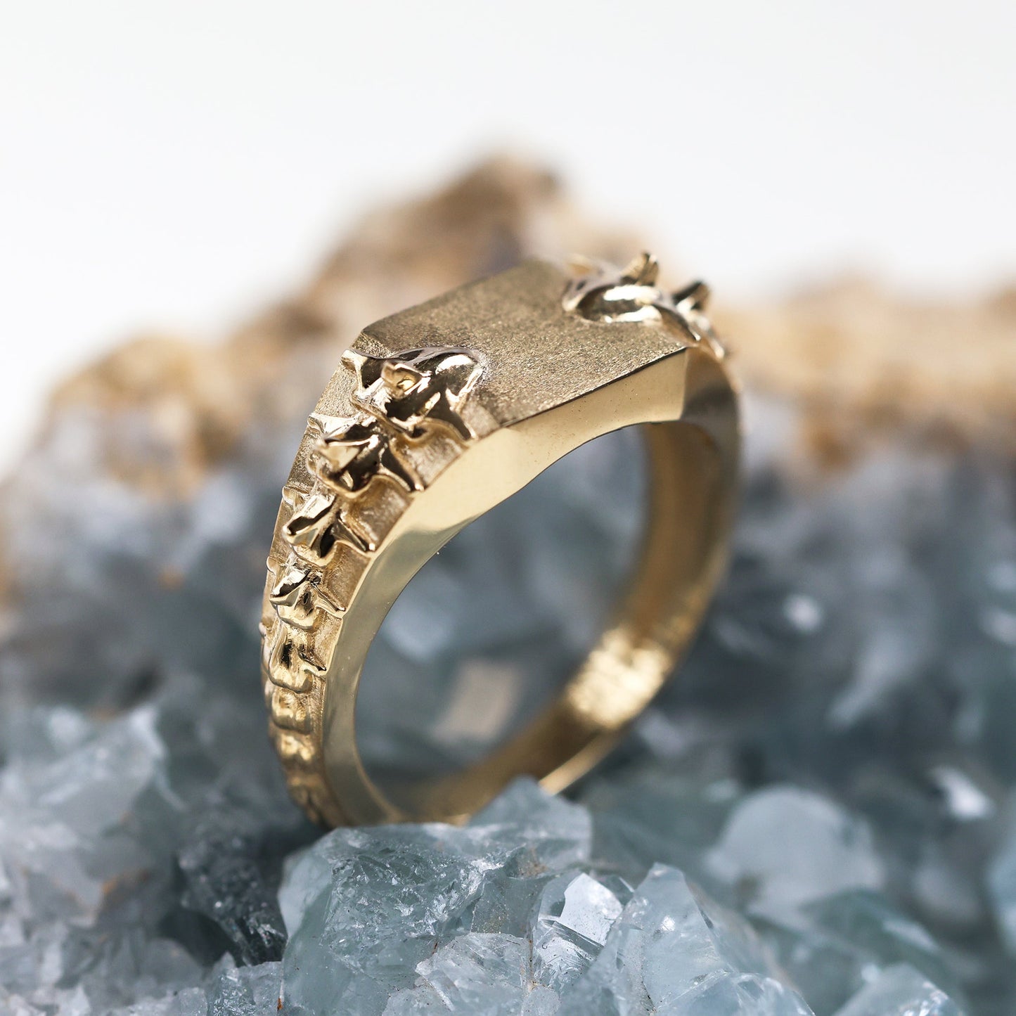 Prsten sa zlatnim pečatom sa detaljima u obliku zmijskog kičmenog stuba - Spreman za isporuku