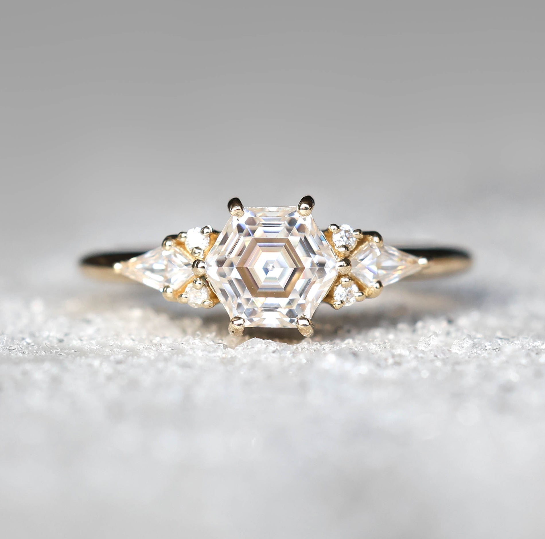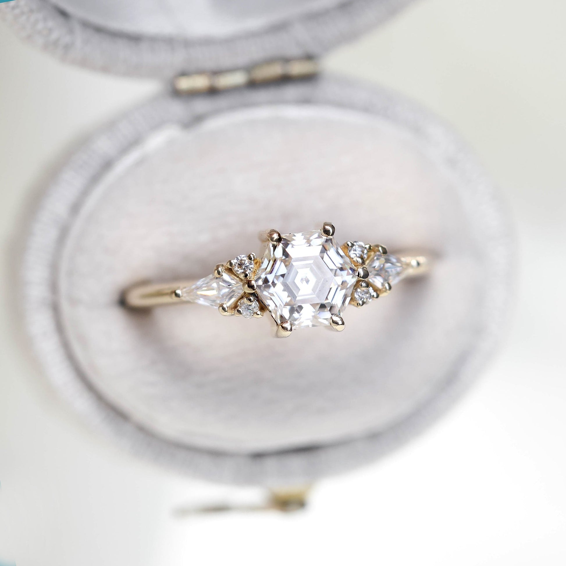 Dijamantski prsten od laboratorijskog dijamanta u hexagon obliku