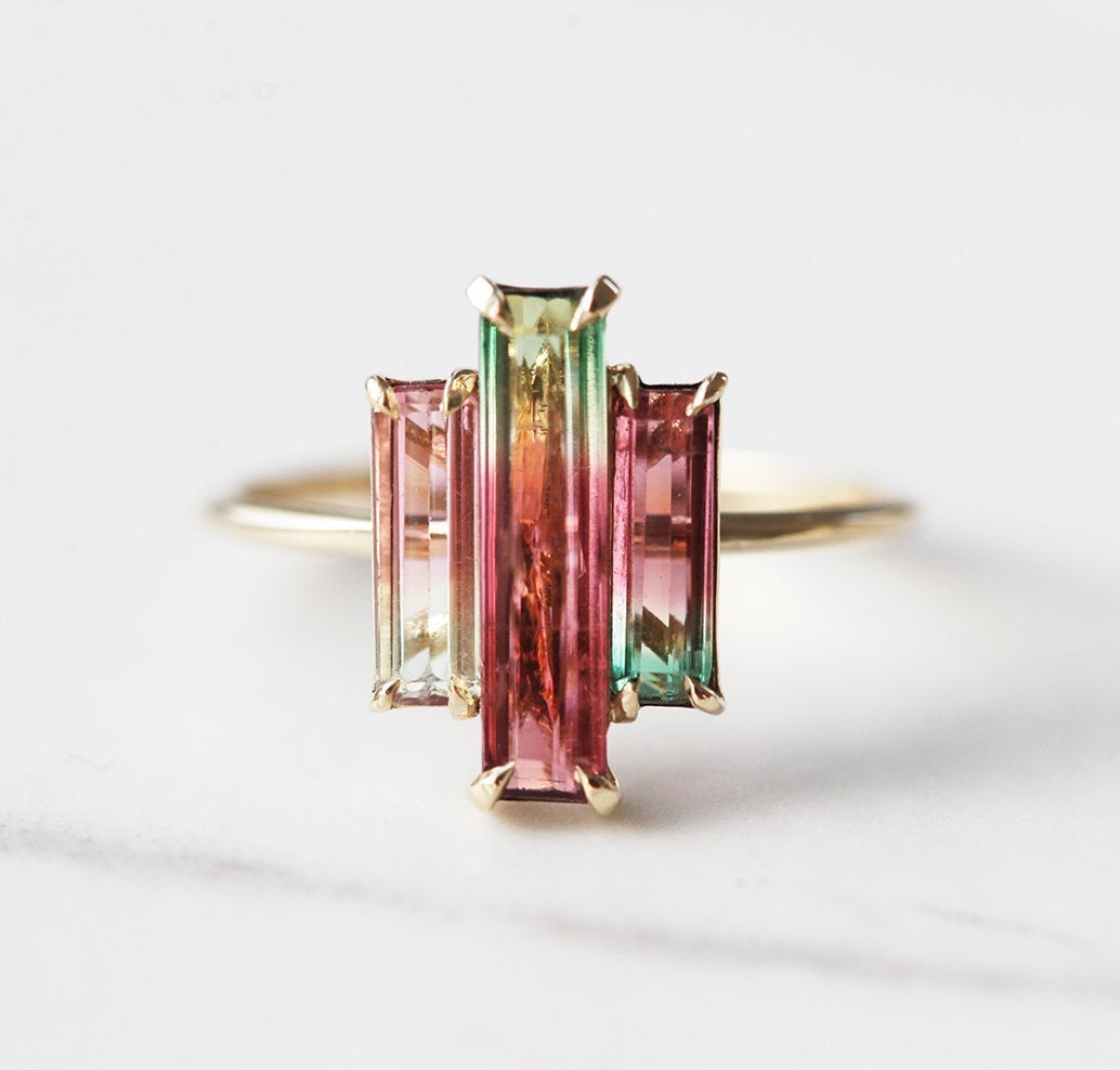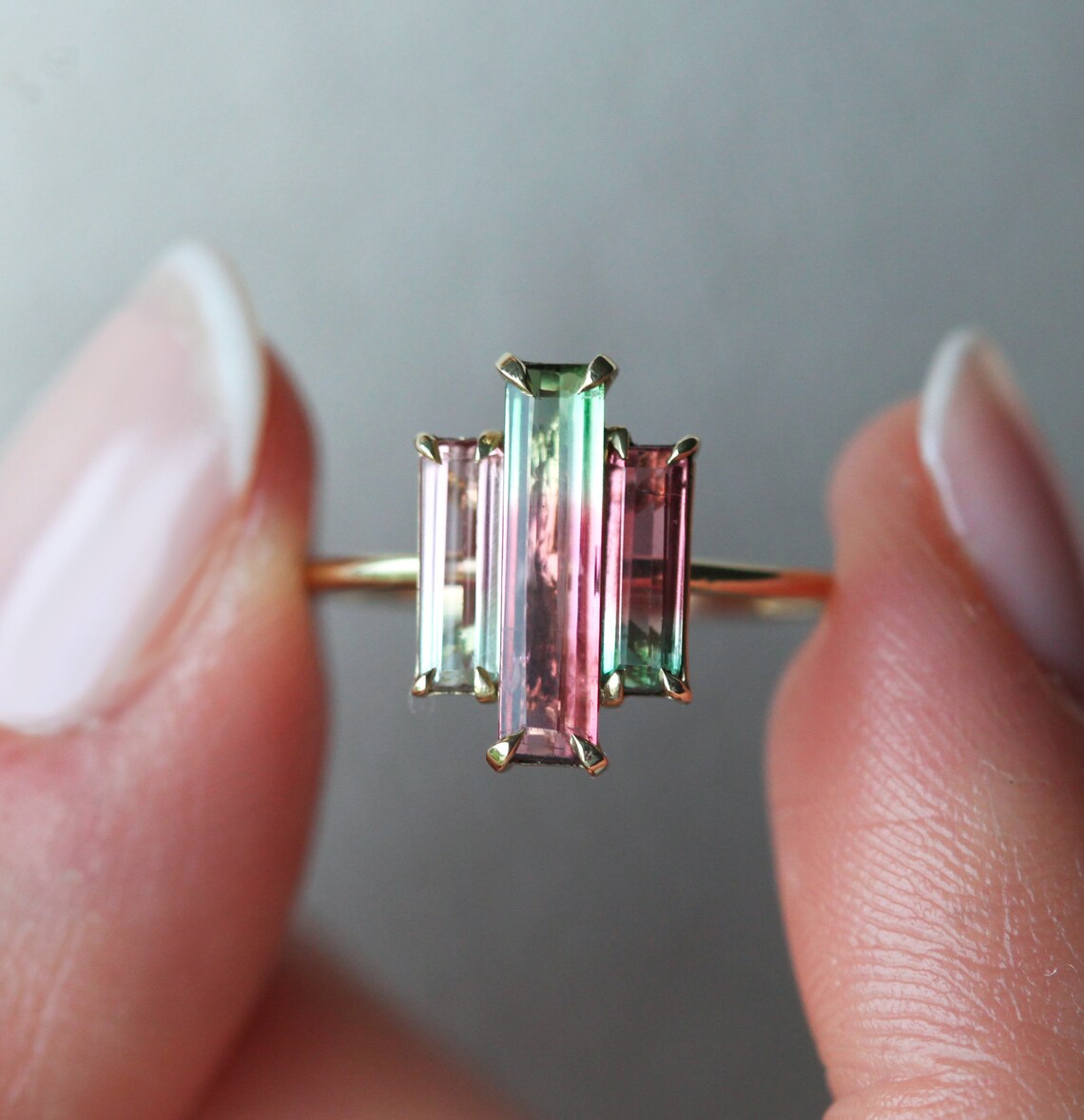 Zašto ne biste imali leto tokom cele godine sa našim jedinstvenim prstenom od lubenica turmalina? Ovi prstenovi dolaze u više stilova, zelene nijanse prelaze u roze tonove, čineći svaki komad jedinstvenim modernim prstenom savršenim za veridbu, godišnjicu ili kao rođendanski poklon za one rođene u oktobru.