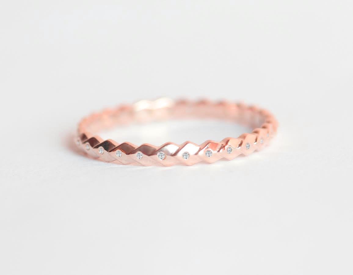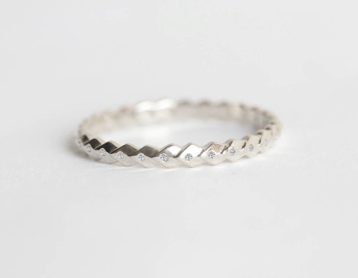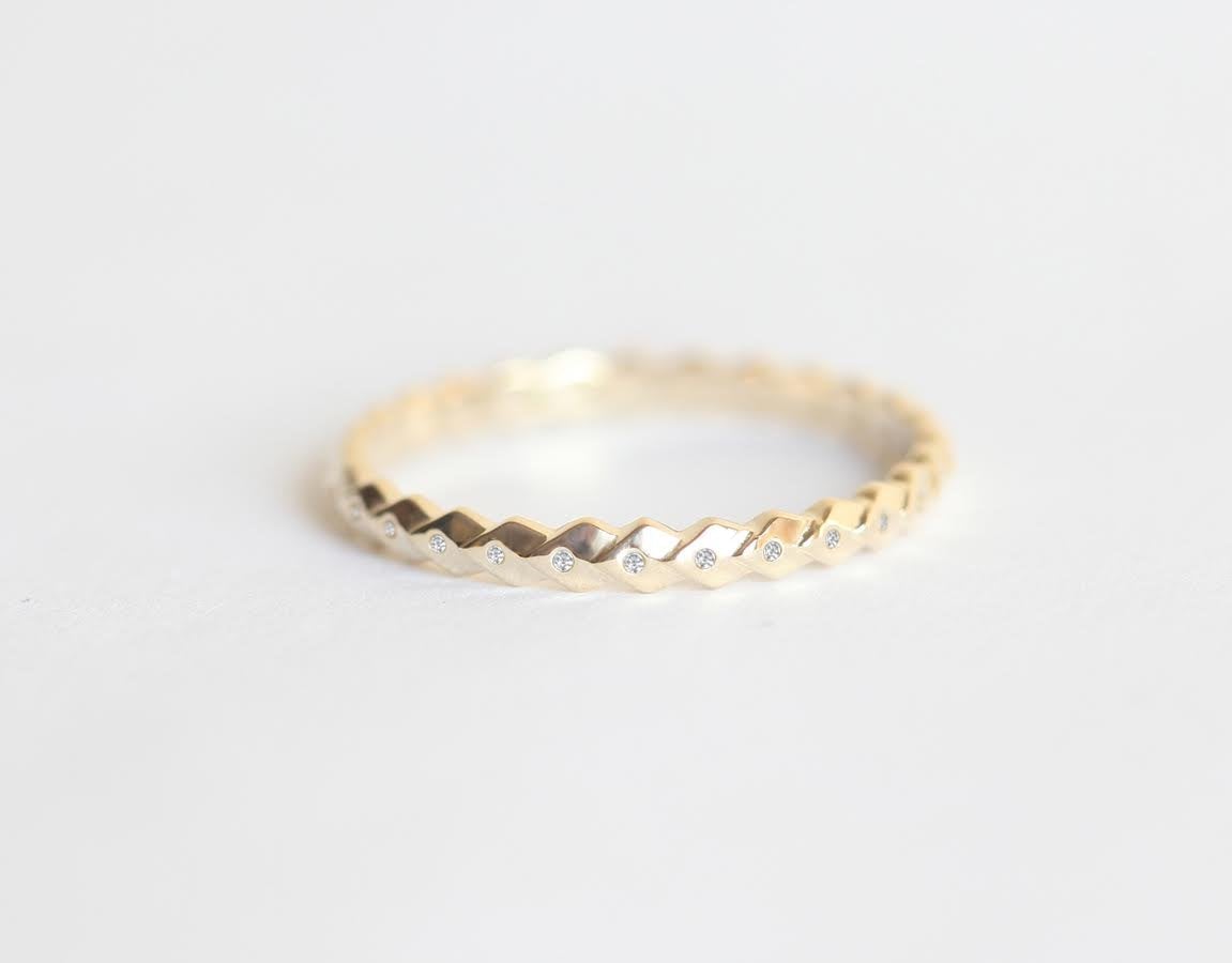 Ovaj minimalistički i elegantan prsten idealan je za svakodnevno nošenje. Možete izabrati varijantu bez dijamanata, half pave ili full pave.