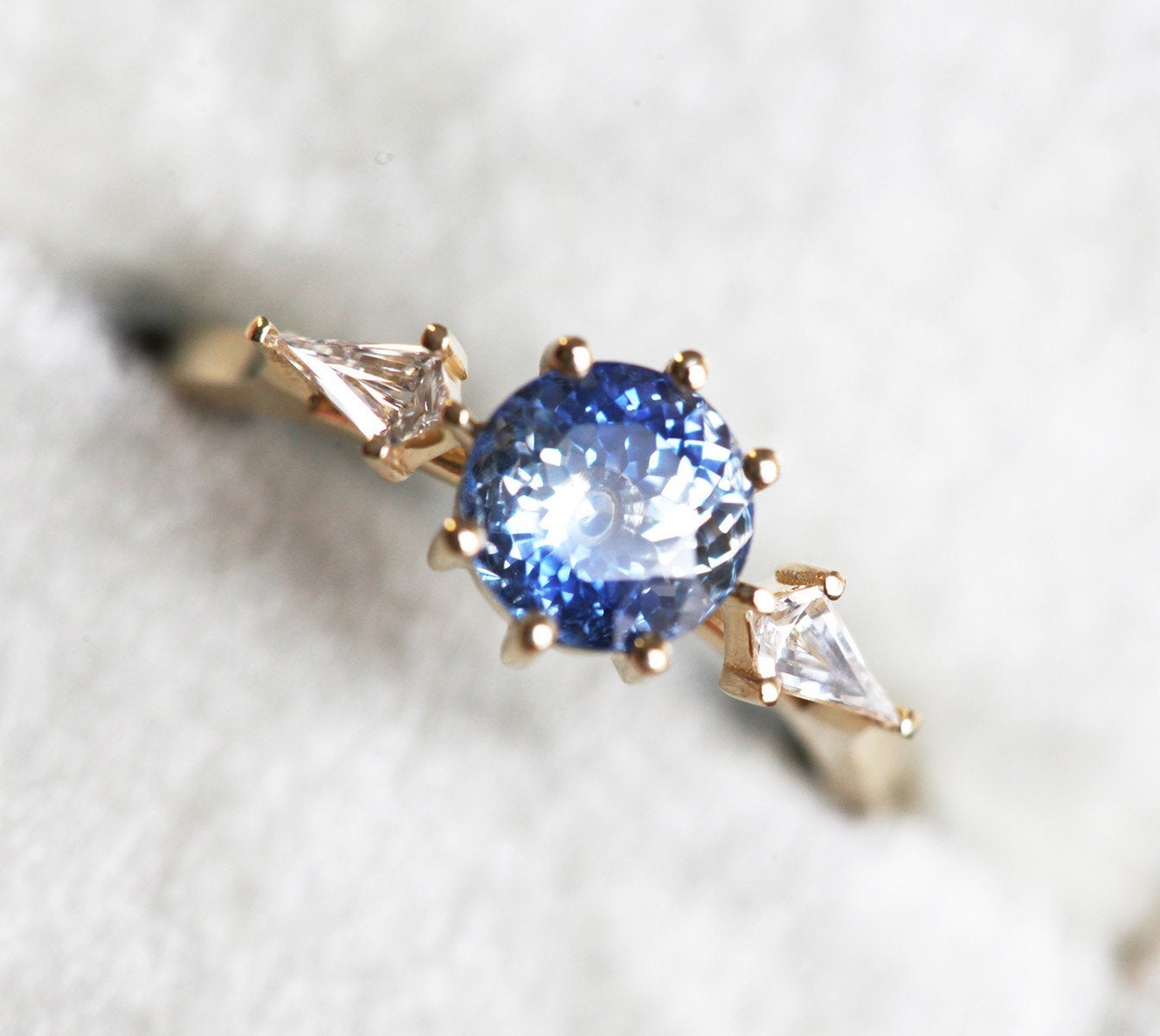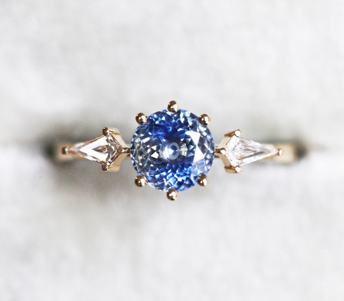 Jolie, dijamantski prsten na kom će vam mnogi zavideti. Sa prelepim plavim safirom i bočnim belim dijamantima u obliku romba, njegov dizajn predstavlja spektakularno umetničko delo koje će graciozno istaći lepotu.
