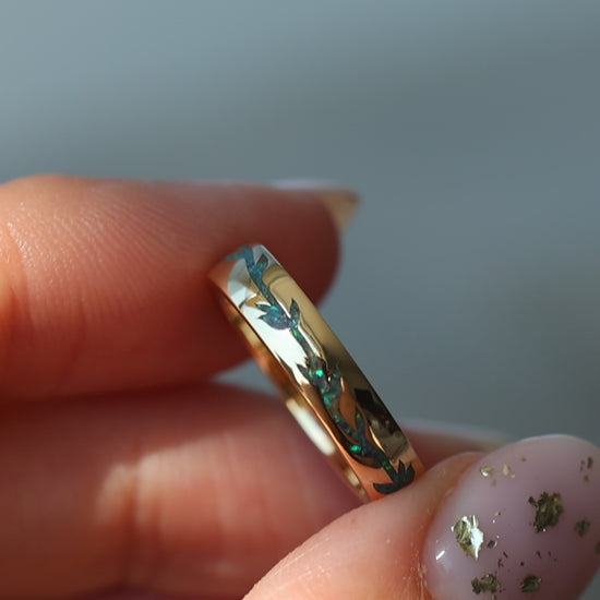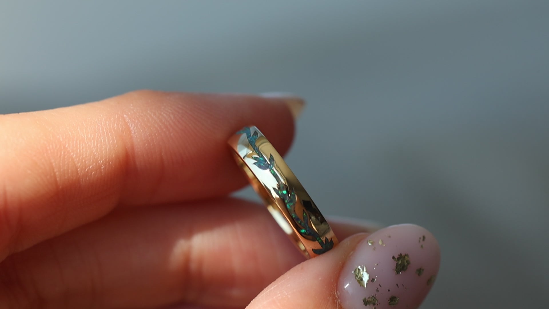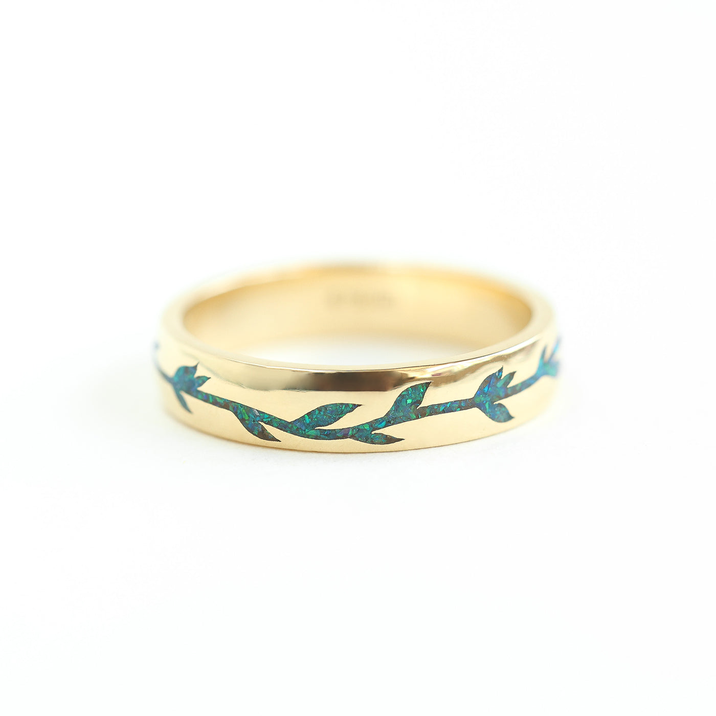 Prsten sa inlej-om od listnog opala za muške i ženske.