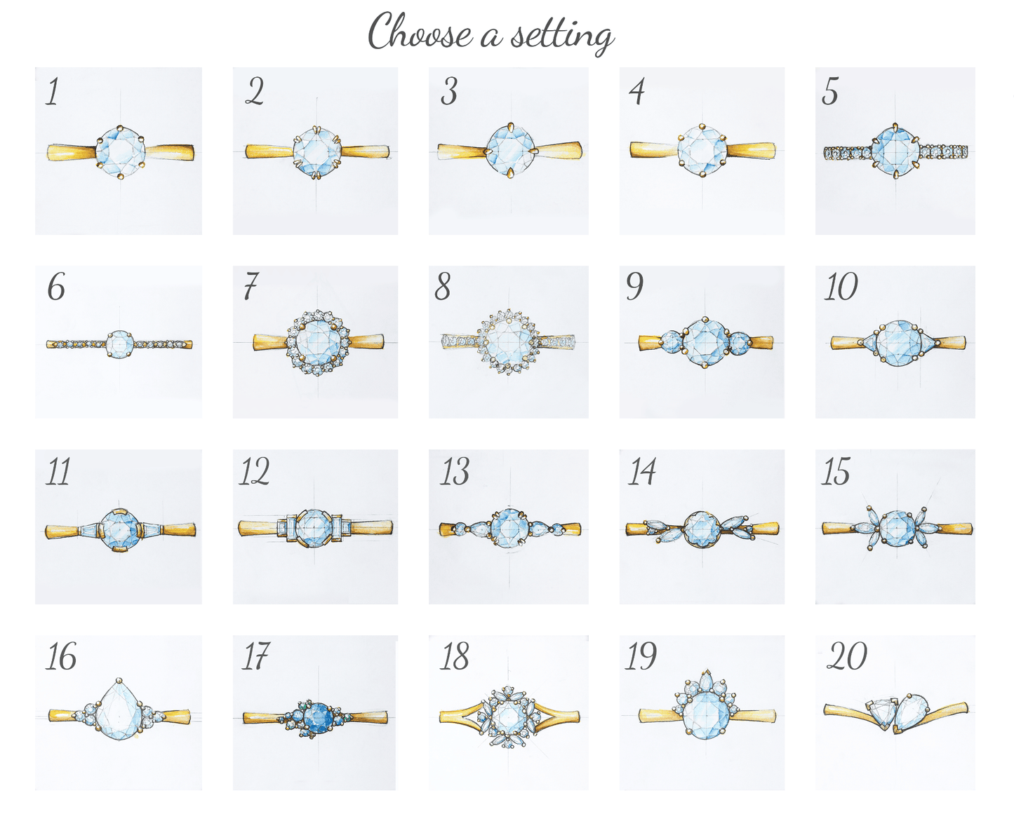 Možete birati između različitih oblika i rezova dijamanata (brilliant, pear, marquise, princess, oval itd.).