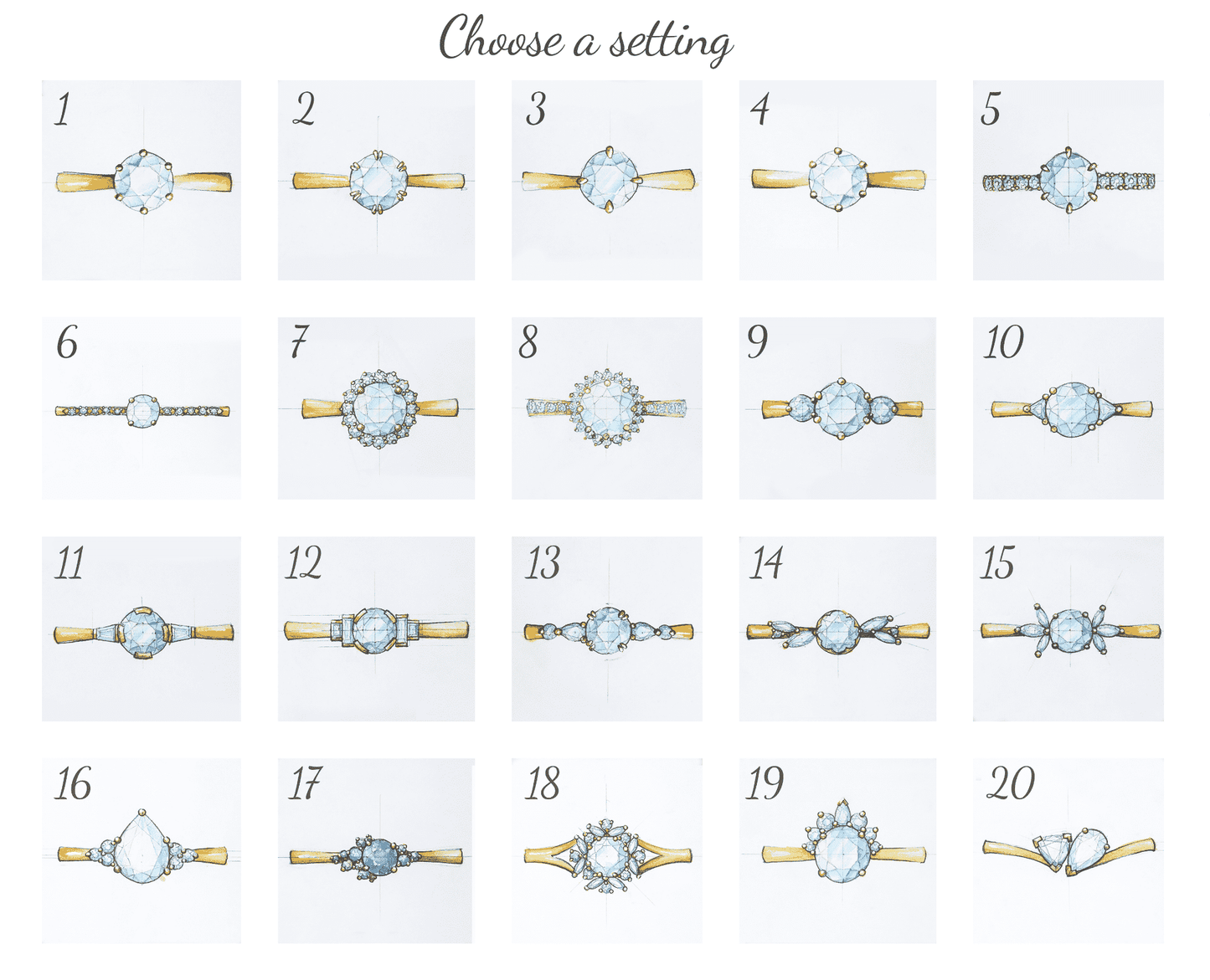 Možete birati između različitih oblika i rezova dijamanata (brilliant, pear, marquise, princess, oval itd.).