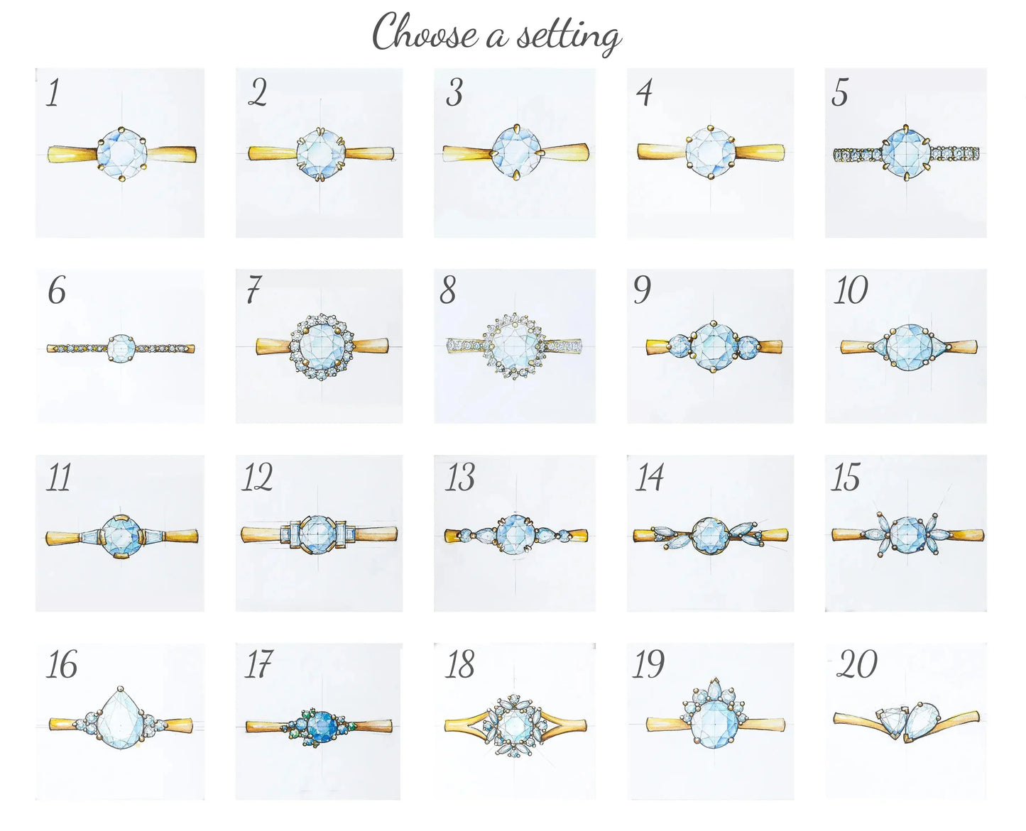 Možete birati između različitih oblika i rezova dijamanata (brilliant, pear, marquise, princess, oval itd.).
