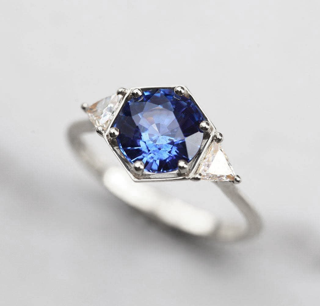 Evo još dva izuzetna komada za koje verujemo da će savršeno upotpuniti vaš stil: Ramona kvadratni klaster prsten sa "salt and pepper" dijamantom i Ophelia dijamantski prsten sa ovalnim safirom .
