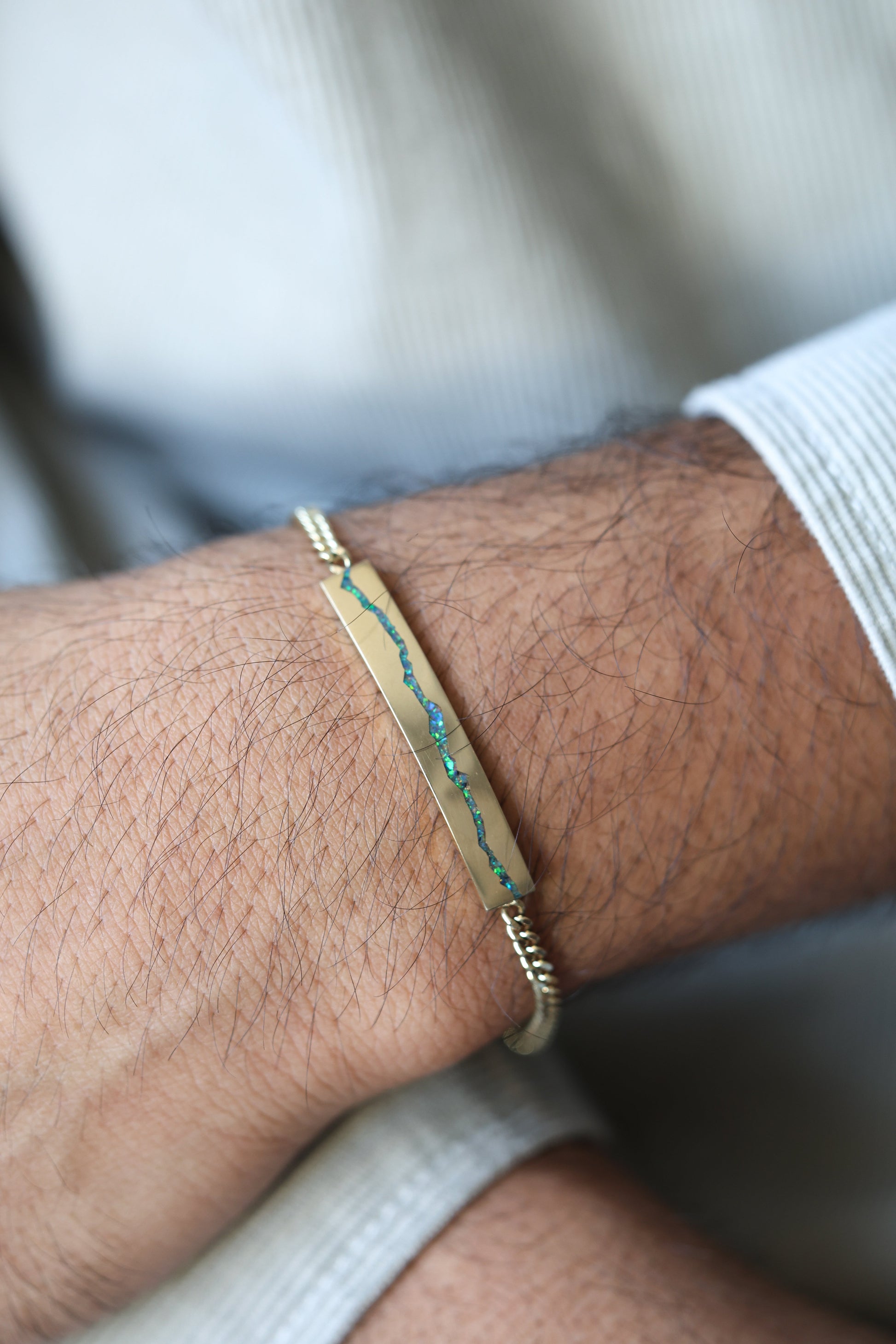 Ova muška narukvica sa opal inlay-em savršen je dodatak za izražavanje vaše individualnosti i dodavanje luksuznog naglaska vašoj kolekciji nakita.