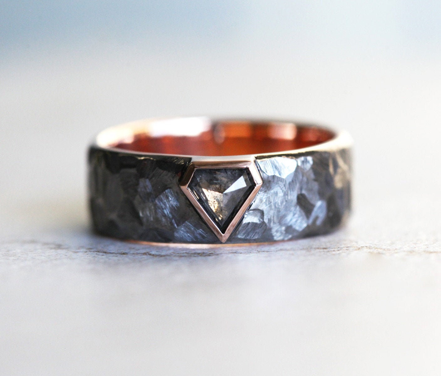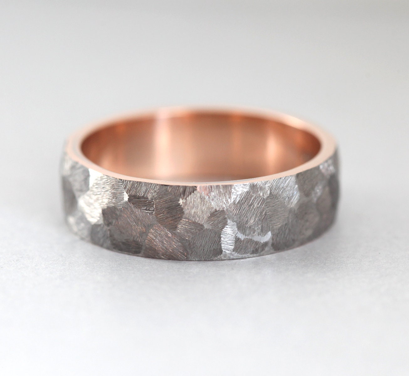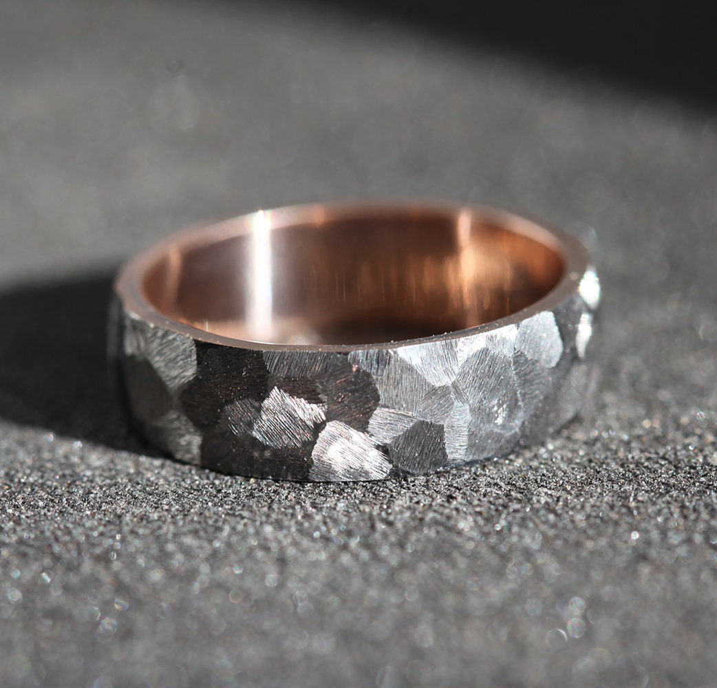 Prsten sa hamerovanim crnim rhodijumom, uniseks model.