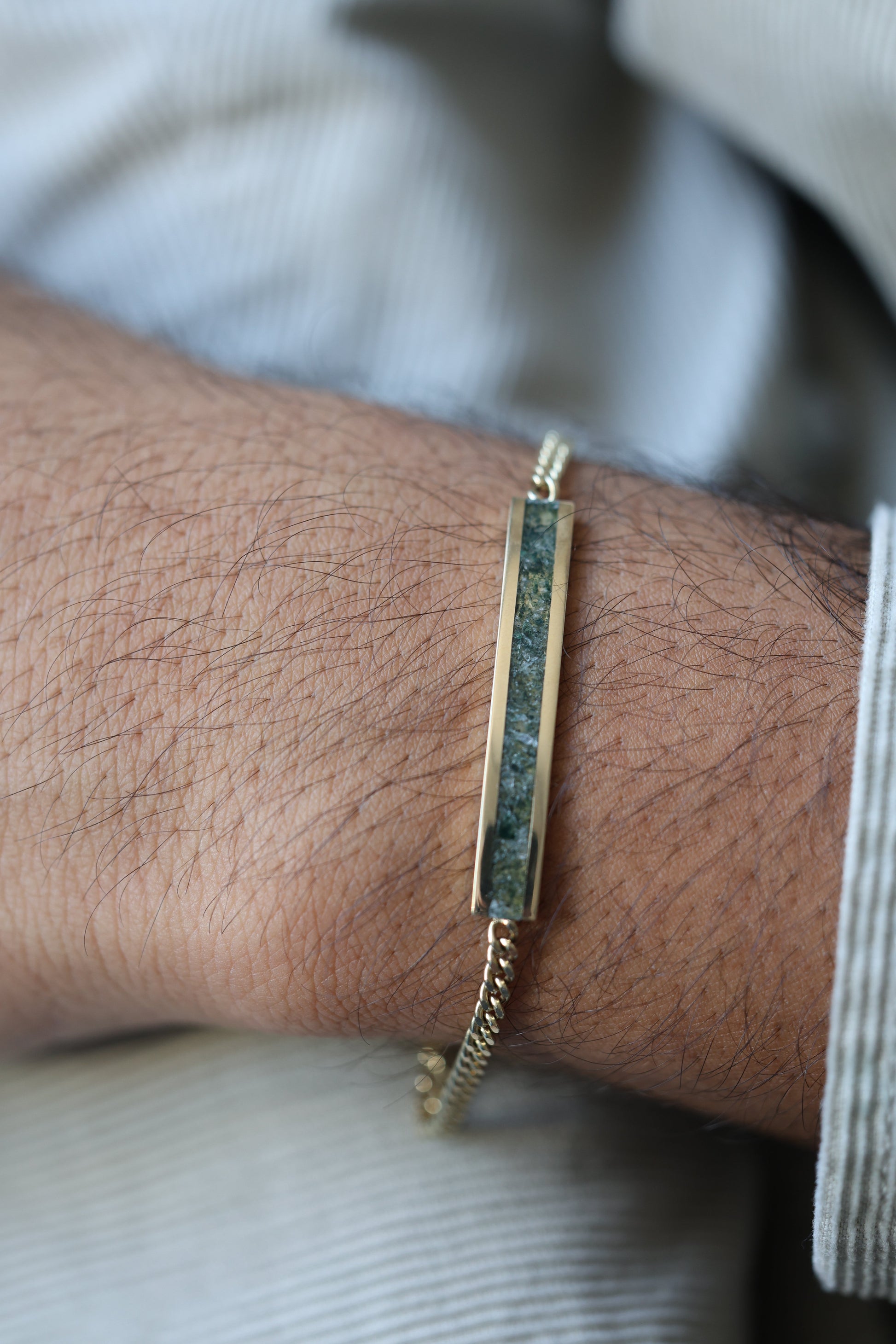 Prigrlite umirujuću energiju mahovinastog ahata i obogatite svoju kolekciju nakita. Dodajte ovaj muški prsten sa umetkom od mahovinastog ahata u svoju kolekciju danas!
