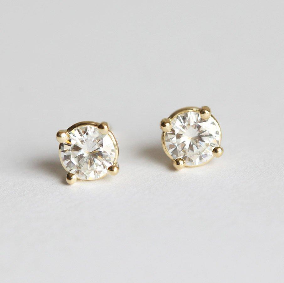 Par minimalističkih polukaratnih okruglih belih dijamanata ili Forever One moissanita u 14k punom roze, belom ili žutom zlatu. Savršene kao elegantan i luksuzan poklon za godišnjicu braka.