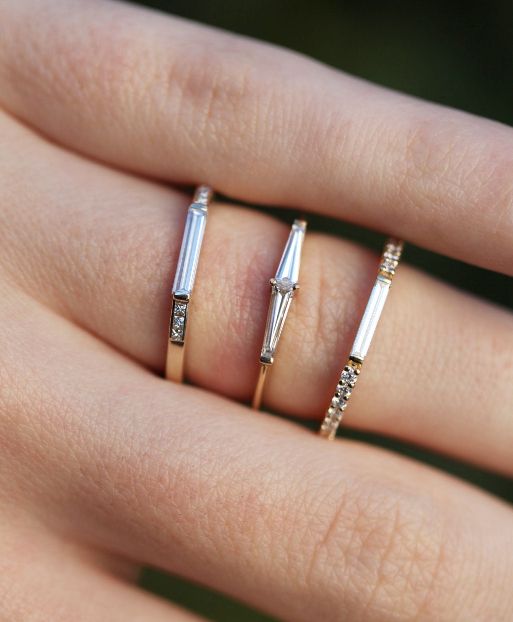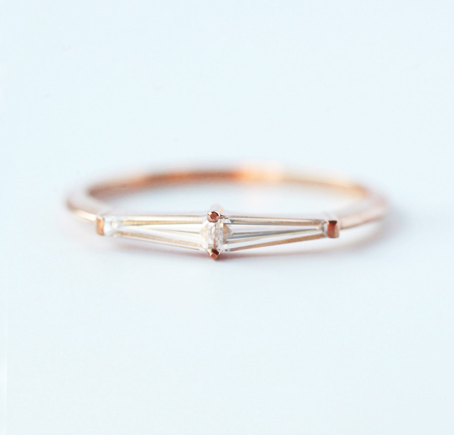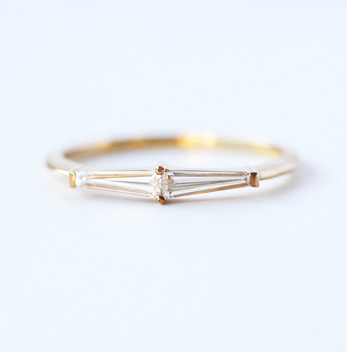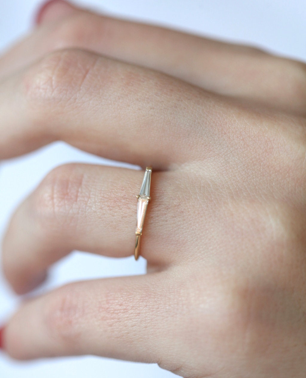 Inspirisan Art Deco erom – vremenom inovacija i geometrijskih formi. Ovaj minimalistički i elegantni prsten može se nositi samostalno ili kao burma.