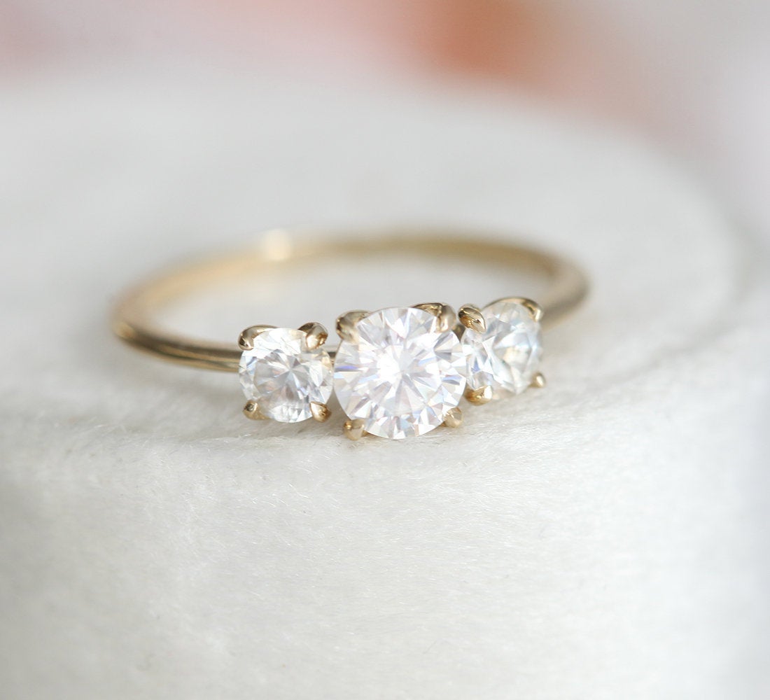 Abby je prelep prsten sa tri kamena, ukrašen bočnim belim safirima. Stil prstena sa tri kamena vekovima simbolizuje prošlost, sadašnjost i budućnost ljubavi, a ovaj model odiše klasičnom elegancijom.