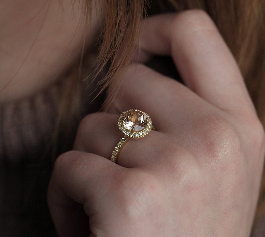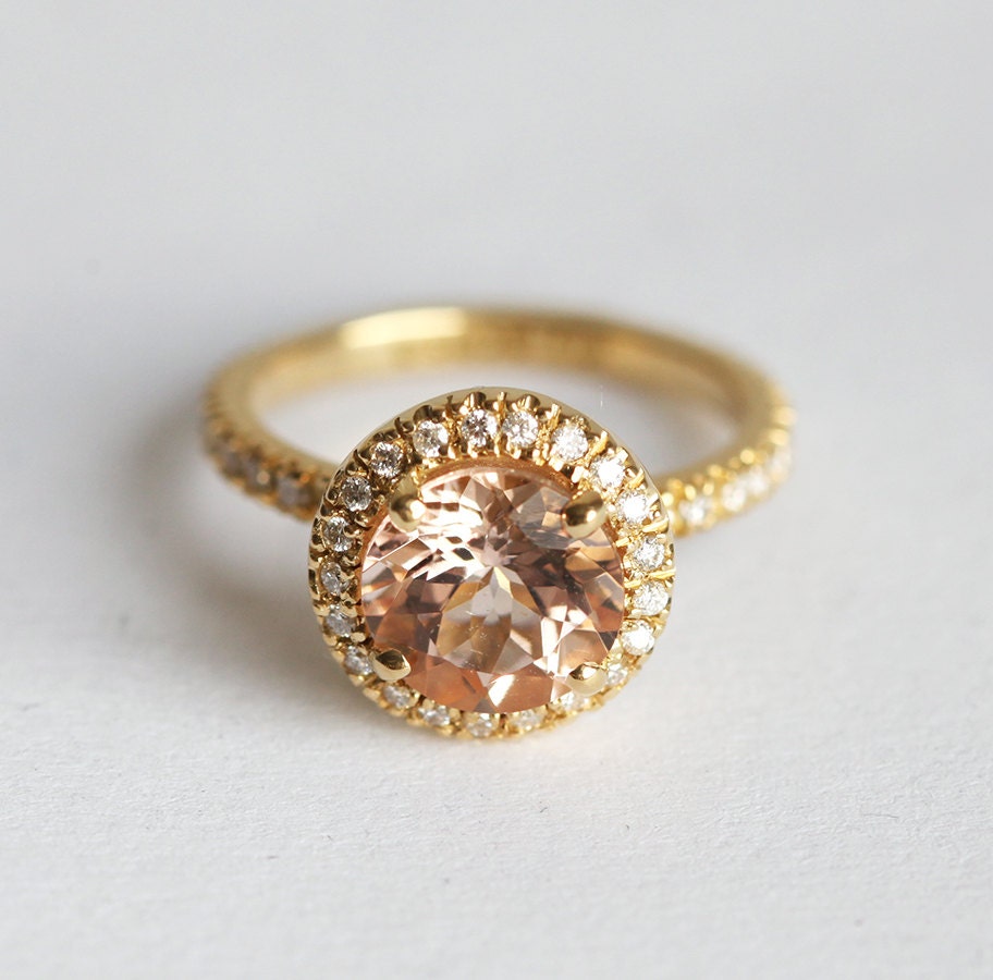 Otkrijte eleganciju Yasmine - izuzetnog prstena za veridbu ili venčanje. Centralni morganit boje breskve okružen je full pave halo dijamanata. Izrađen sa pažnjom i preciznošću, Yasmine je simbol ljubavi i posvećenosti.