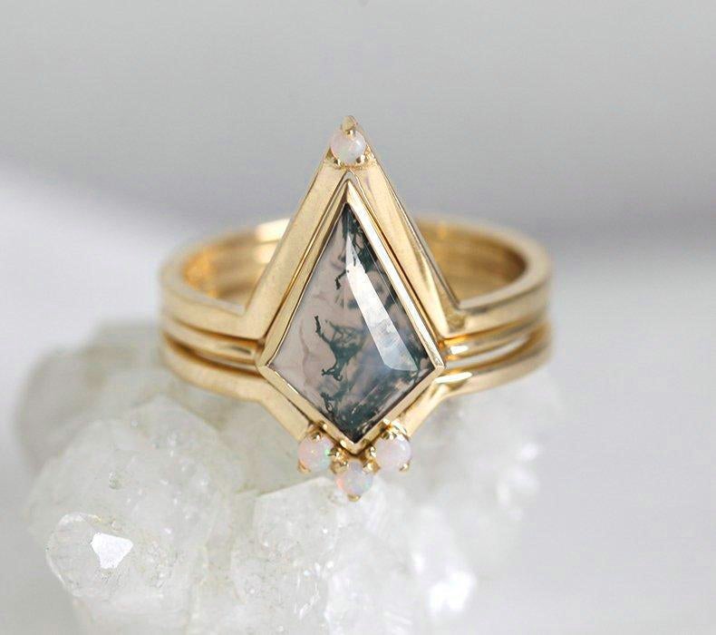 Zara prsten sa moss-agate u obliku romba - Spreman za otpremu