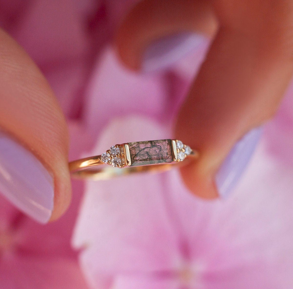 ARIANA PRSTEN SET SA BAGUETTE MOSS AGATE-OM