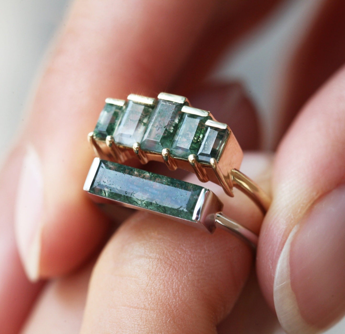 Amara prsten sa baguette cut moss agate-om