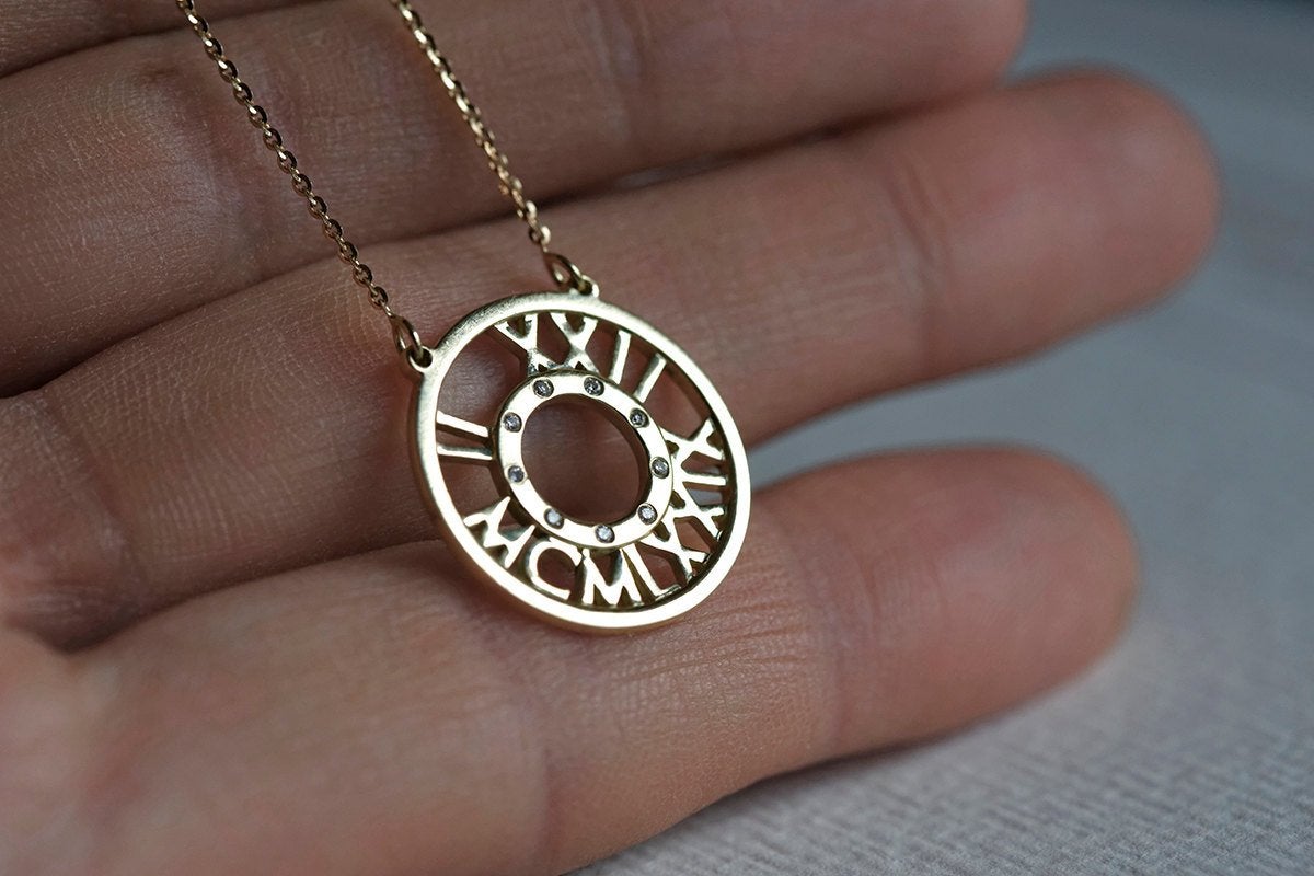 Zlatna ogrlica sa rimskim brojevima u krugu