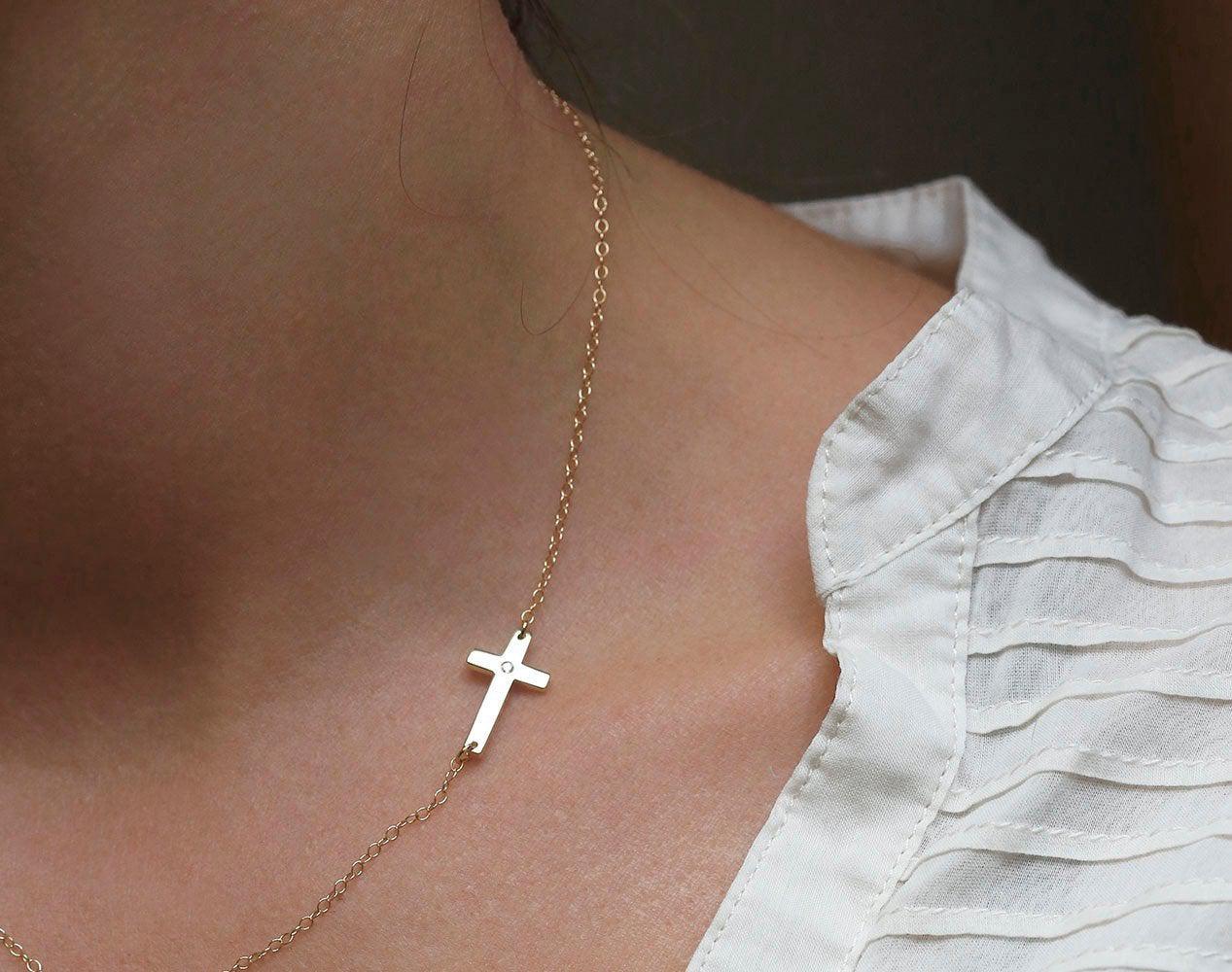 Ogrlica koju morate imati! Ogrlica sa krstom od 14k zlata sa malim dijamantom u sredini. Savršena za svakodnevno nošenje i kombinovanje. Dužina ogrlice na fotografiji je 16 inča.