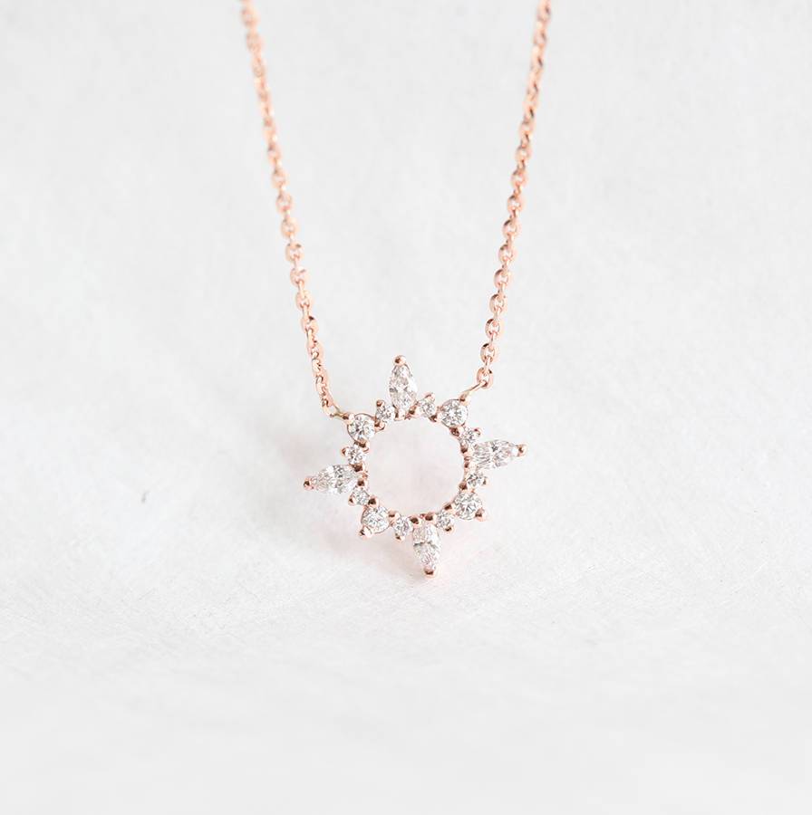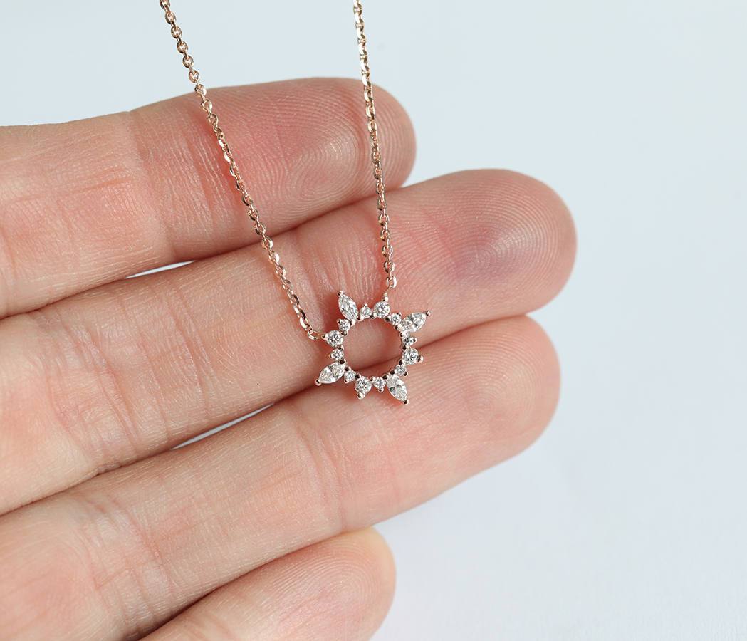 Ova prelepa i nežna dijamantska ogrlica savršen je izraz ljubavi ili lični poklon. Dizajnirana da naglasi ženstvenost donosi sjaj i eleganciju svakodnevnom stilu. Dostupna u 14k ili 18k roze belom ili žutom zlatu.