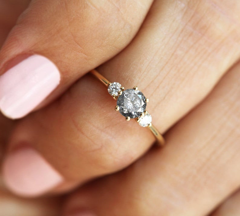 Kelly prsten sa okruglim "salt & pepper" dijamantom