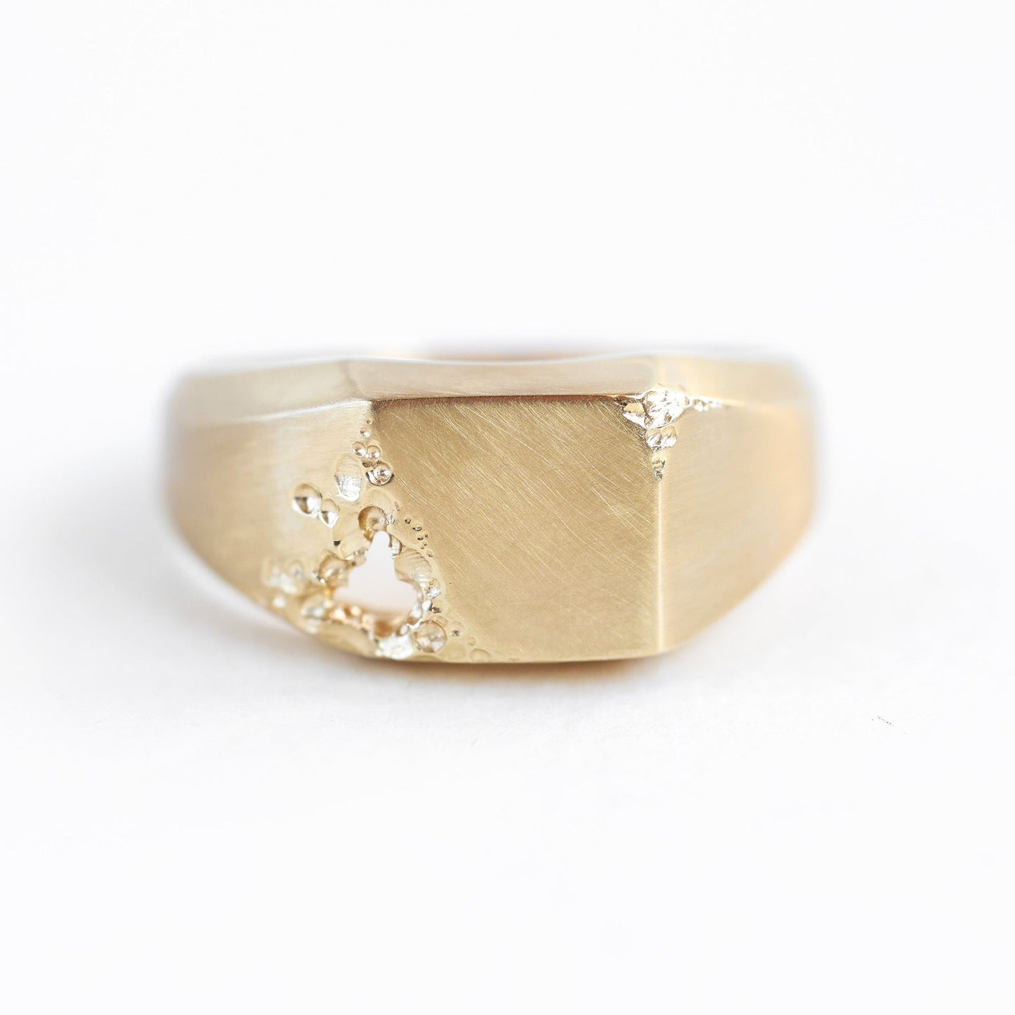 Ovaj elegantan dizajn je muški prsten sa pečatom u zlatu ili platini.