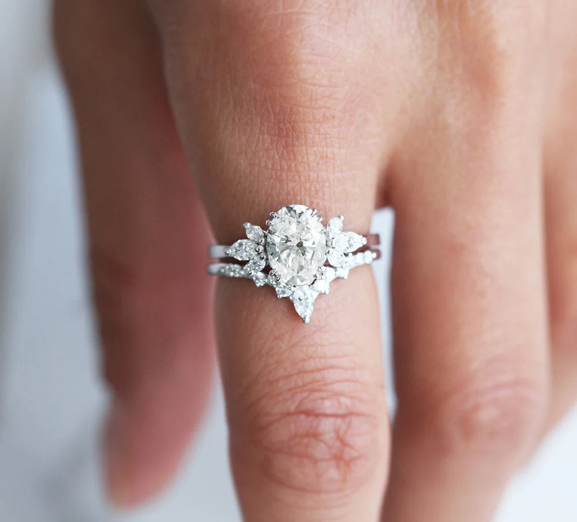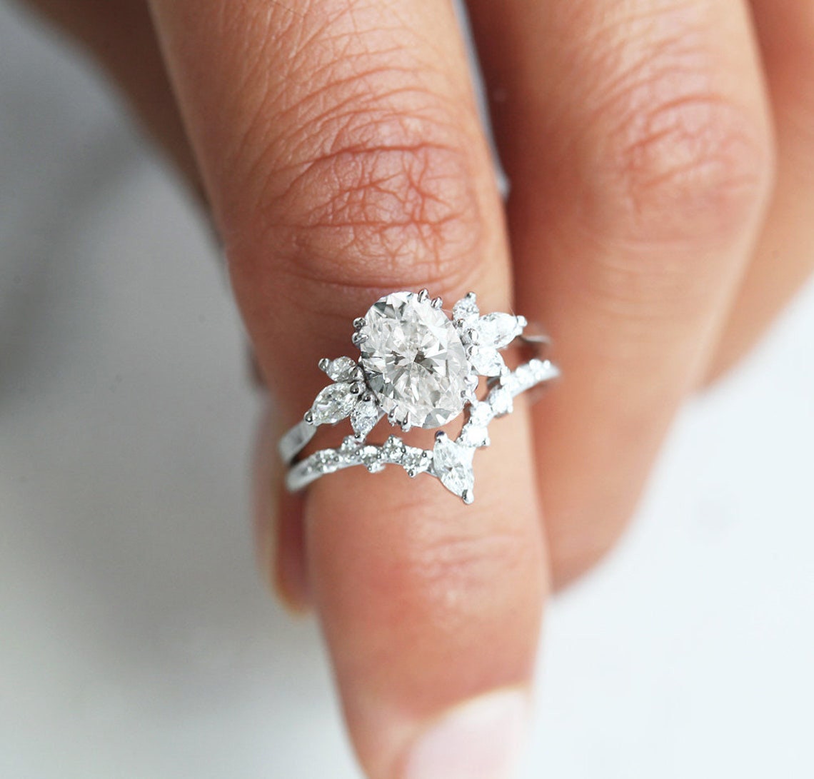 Vera oval prsten set sa laboratorijskim dijamantom u belom zlatu
