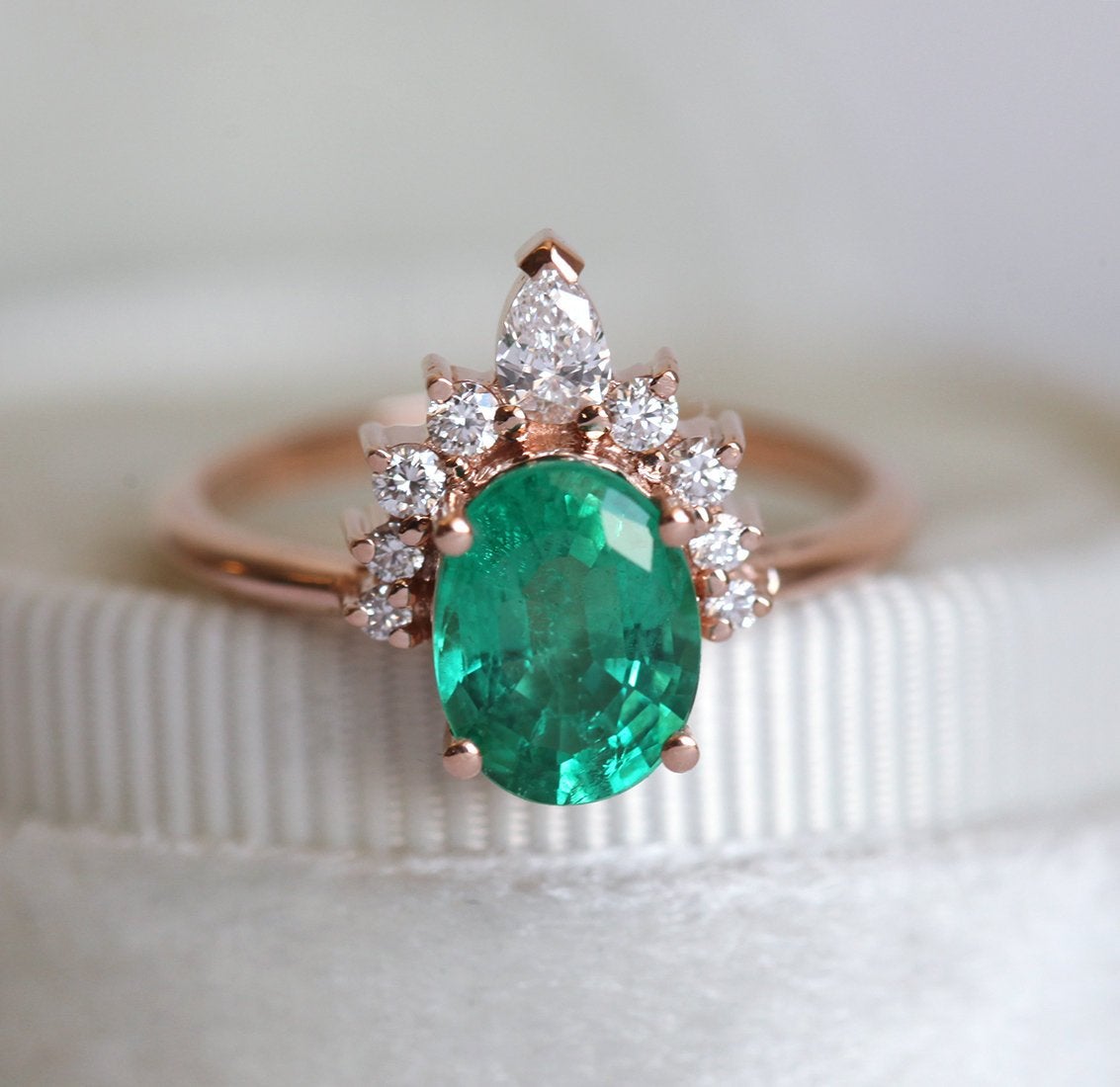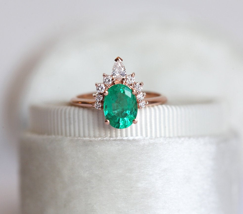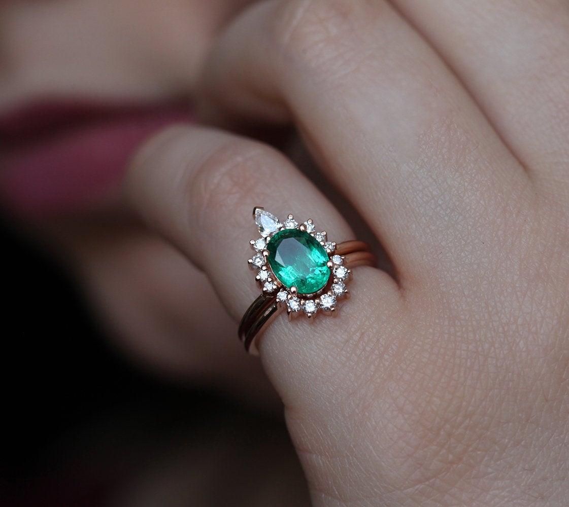 Trava može biti zelenija s druge strane, ali ne kada imate prsten poput ovog na svom prstu. Naš Janice prsten sa 1,2ct ovalnim prirodnim smaragdom i dijamantima je savršen izbor za one rođene u maju, jer je smaragd majski kamen rođenja. Dostupan je i kao set prstenova.