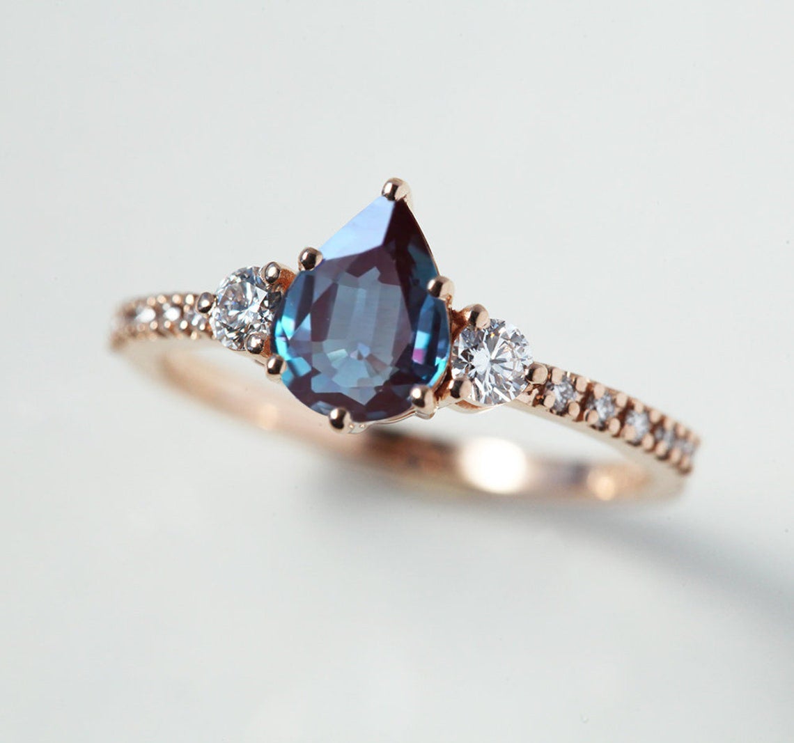 CLAUDIA PRSTEN SA PEAR CUT LABORATORIJSKIM ALEKSANDRITOM