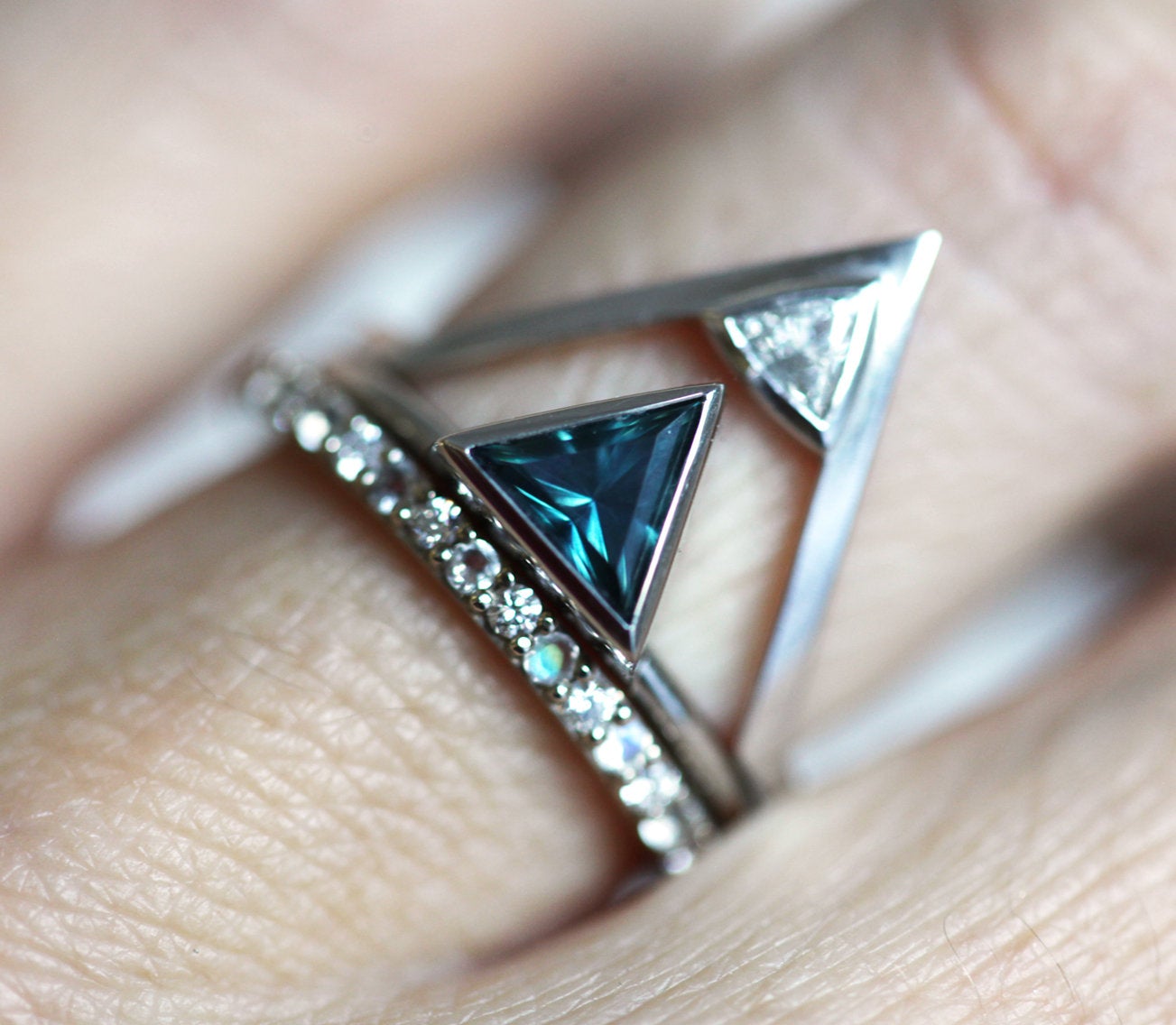 Suština zime uhvaćena je u ovom modernom minimalističkom komadu. Glavni kamen je izrađen po meri i može se ponovo izraditi sa drugim dragim kamenjem na zahtev.