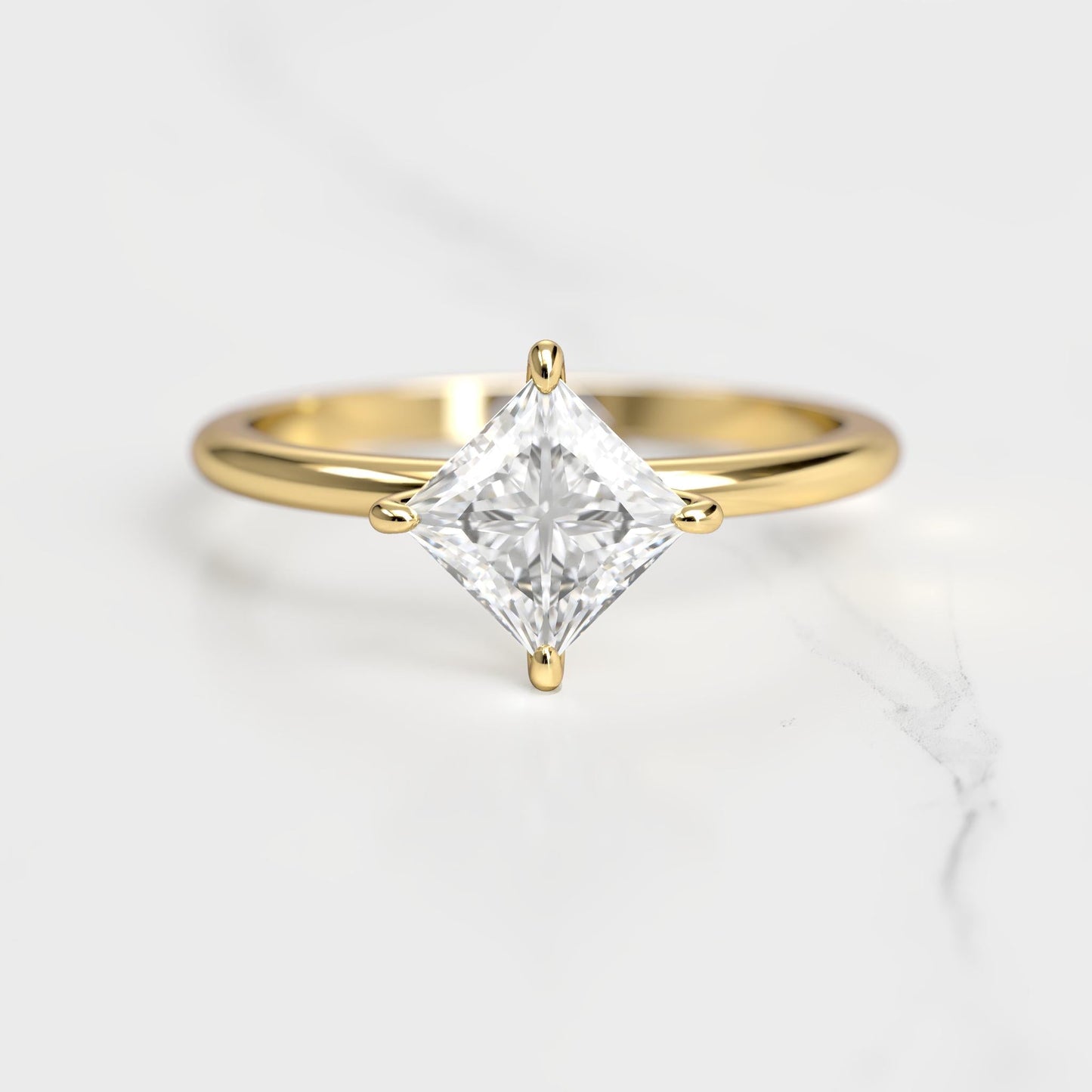 vanvremenski solitaire dizajn sa dijamantom Princess koji odiše elegancijom i ističe lepotu centralnog kamena. Mogućnost kombinovanja sa jednim ili dva venčana prstena.