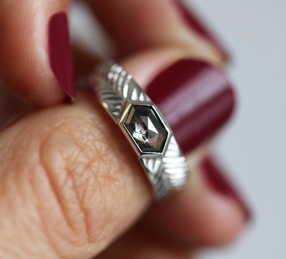 Noemi heksagon prsten sa "salt and pepper" dijamantima