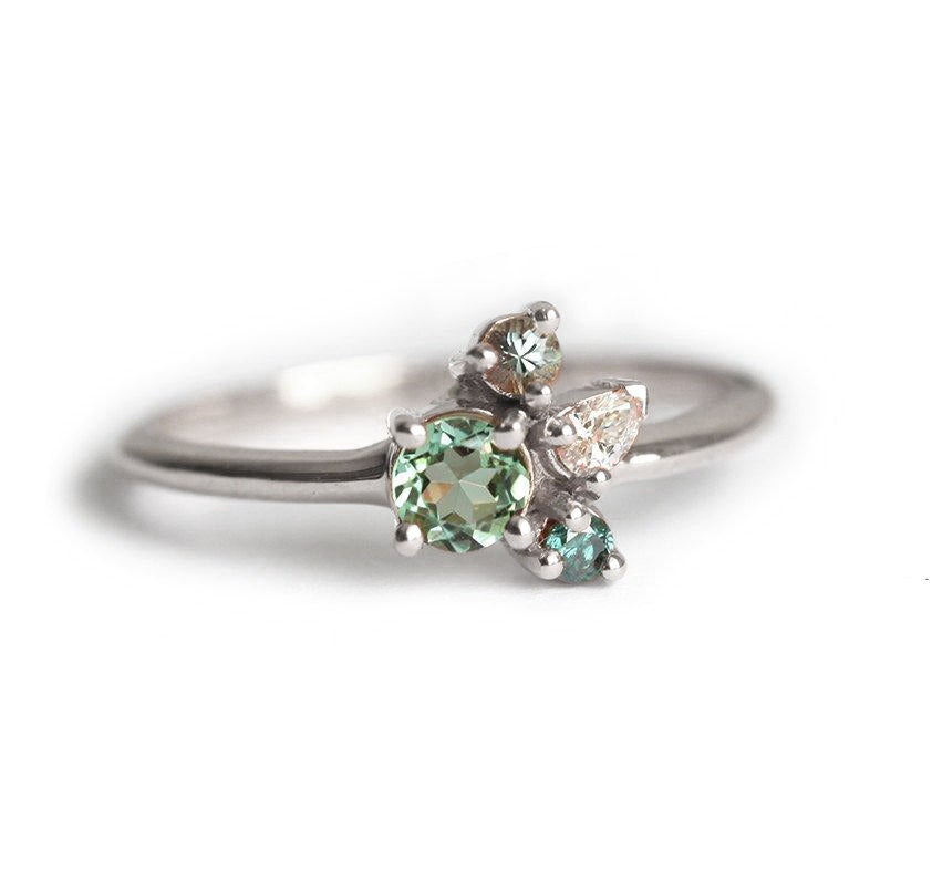 Ovaj šarmantni klaster verenicki prsten je prelepa opcija da impresionirate voljenu osobu. Zbog hladnih nijansi kamenja, ovaj prsten se izdvaja od tradicionalnih i postaje nežan i poseban izbor.