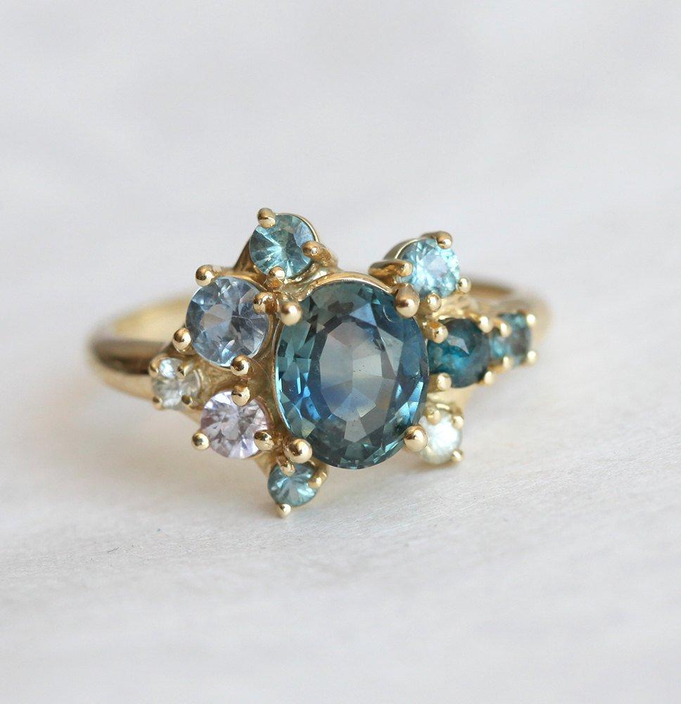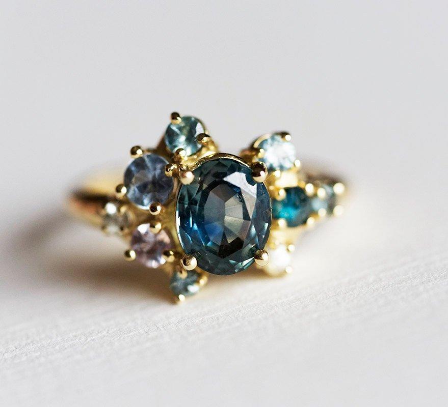Blaine prsten sa modrozelenim safirima u klasteru