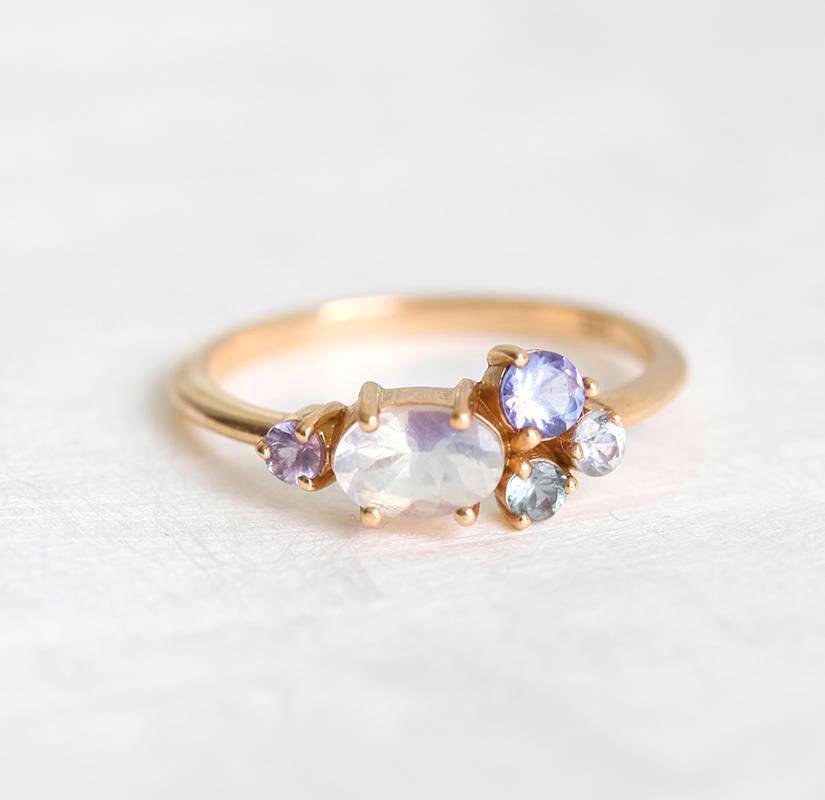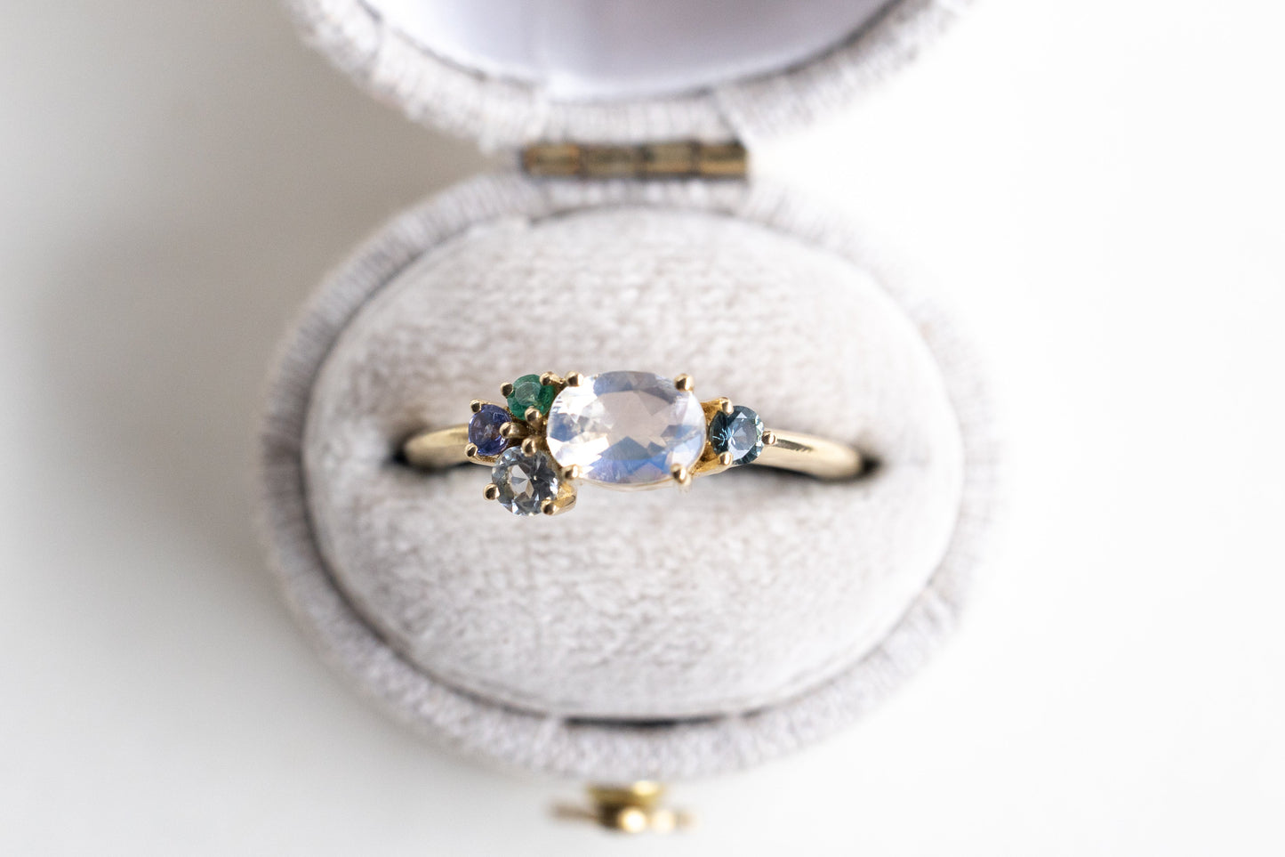 MERRITT OVAL MOONSTONE TANZANITE SAFIR KLASTER PRSTEN