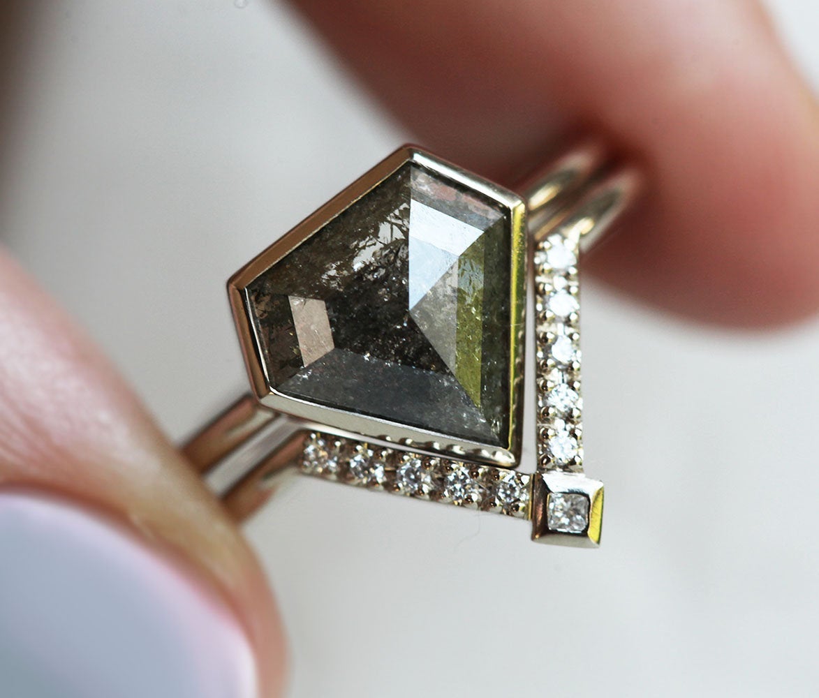 Hana prsten sa "salt & pepper" dijamantom u obliku štita