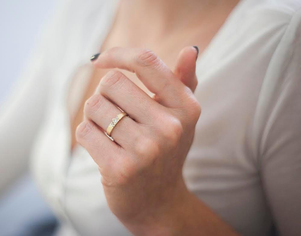 Burma sa dijamantom u obliku trougla. Jedinstven prsten za nju ili njega. Tri dijamanta su bolja od samo jednog :) !