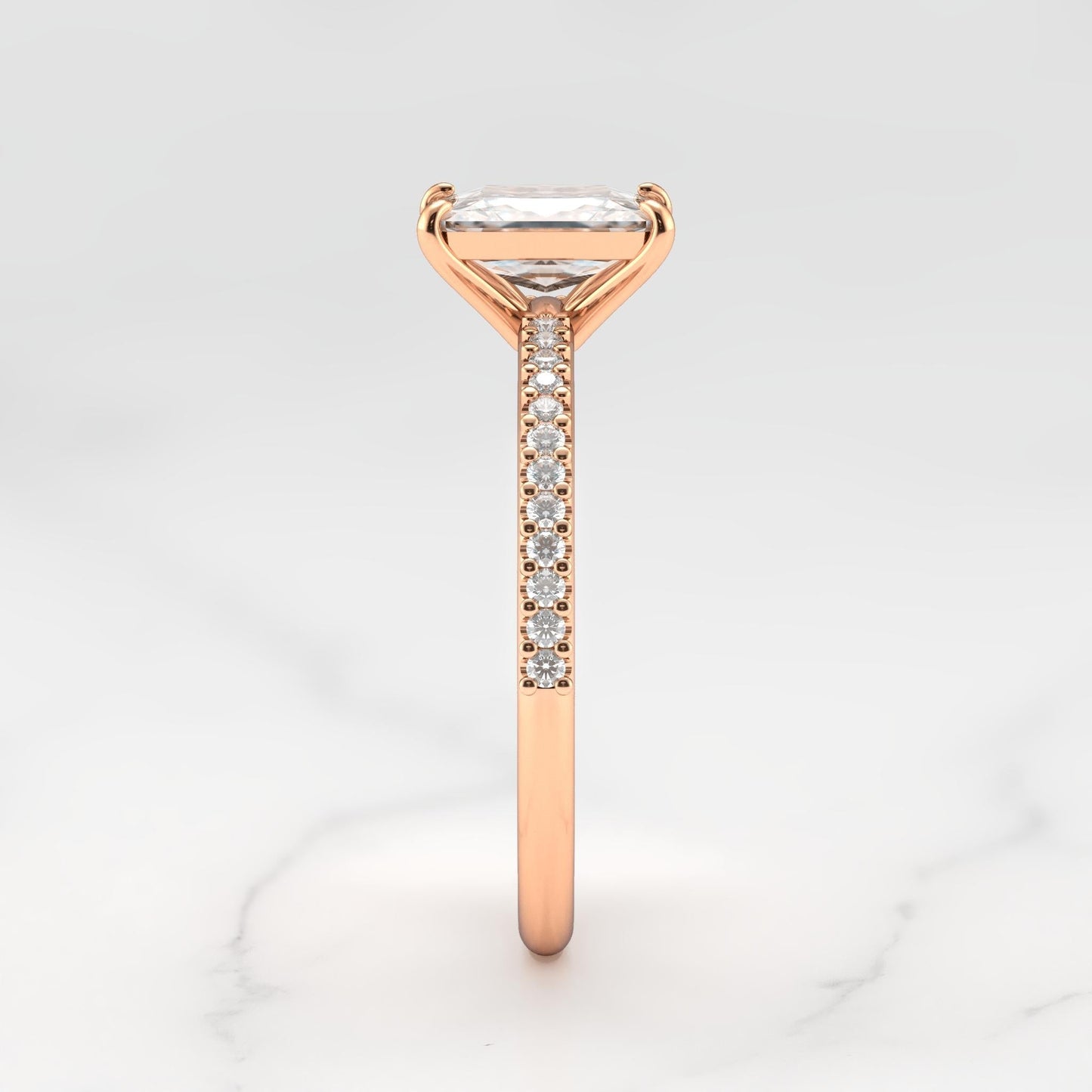Luksuzni prsten za veridbu prelepo izrađen sa half pave postavkom dijamanata koja dopunjuje centralni kamen. Dizajniran da bude voljen i divljen godinama.