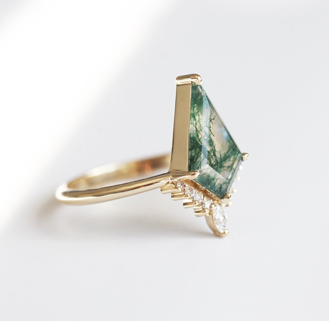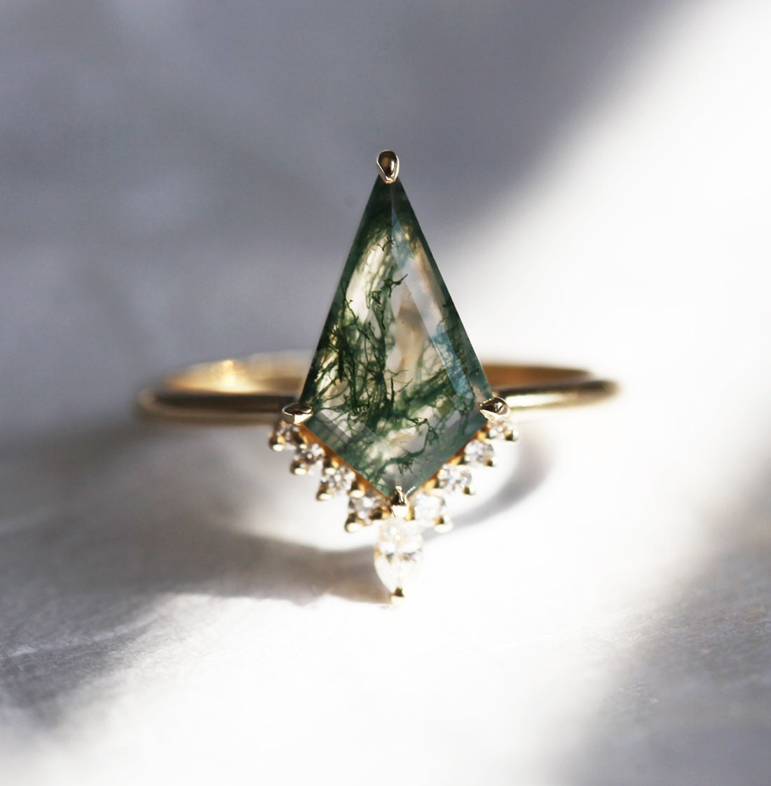 Lily prsten sa moss agate-om u obliku romba i dijamantom