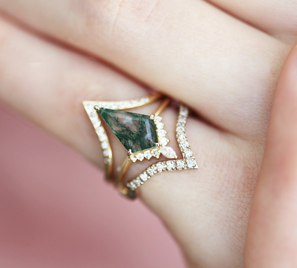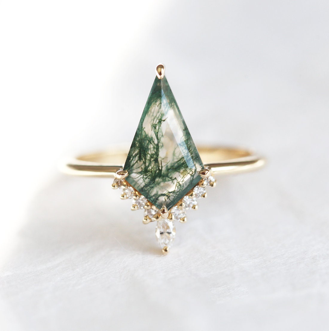 LILY PRSTEN SA MOSS AGATE-OM U OBLIKU ROMBA I DIJAMANTOM